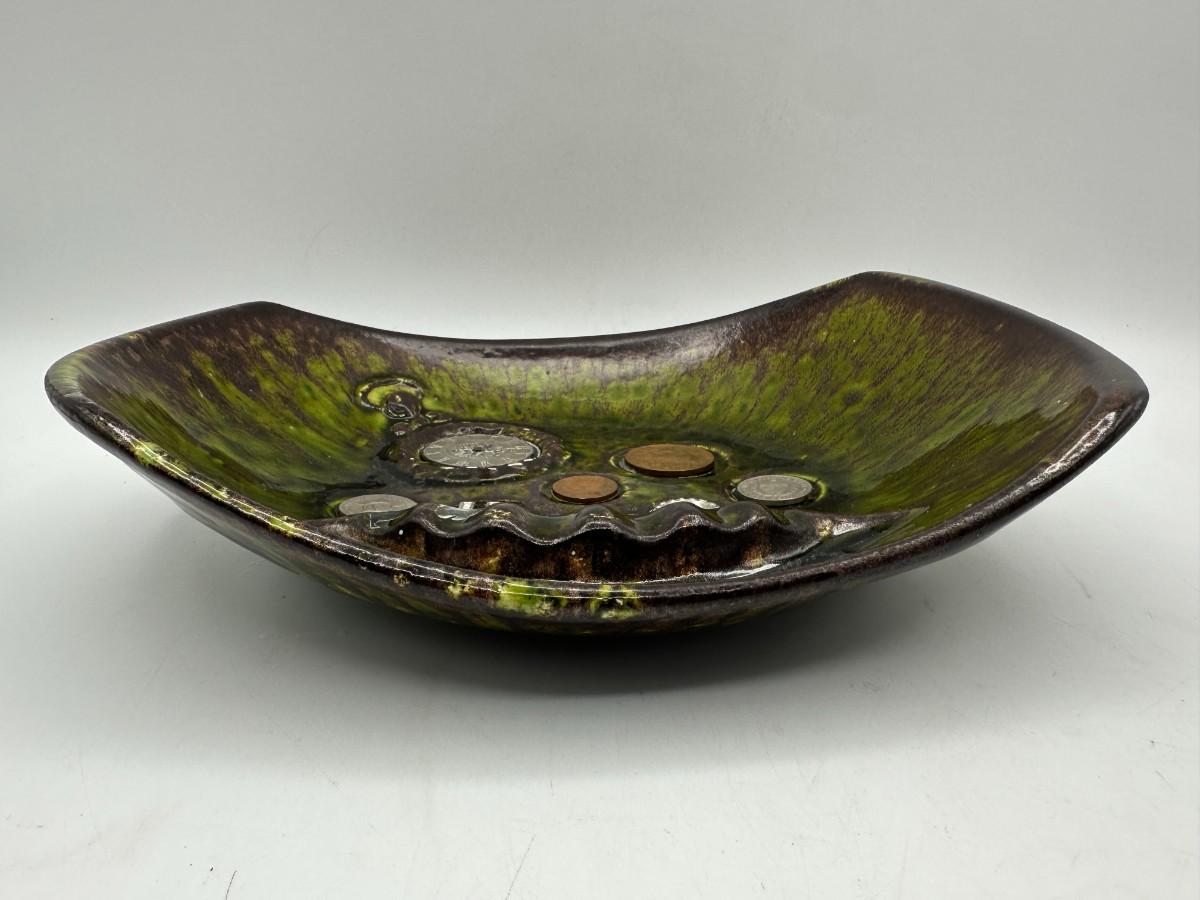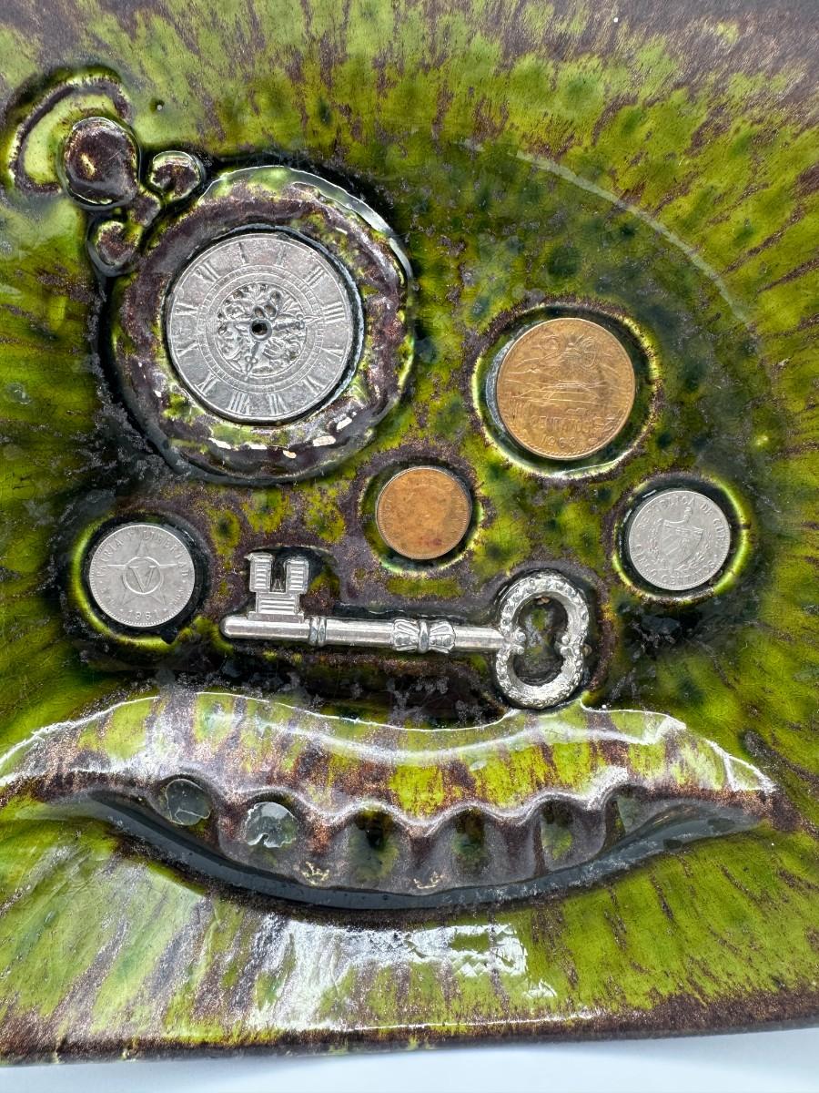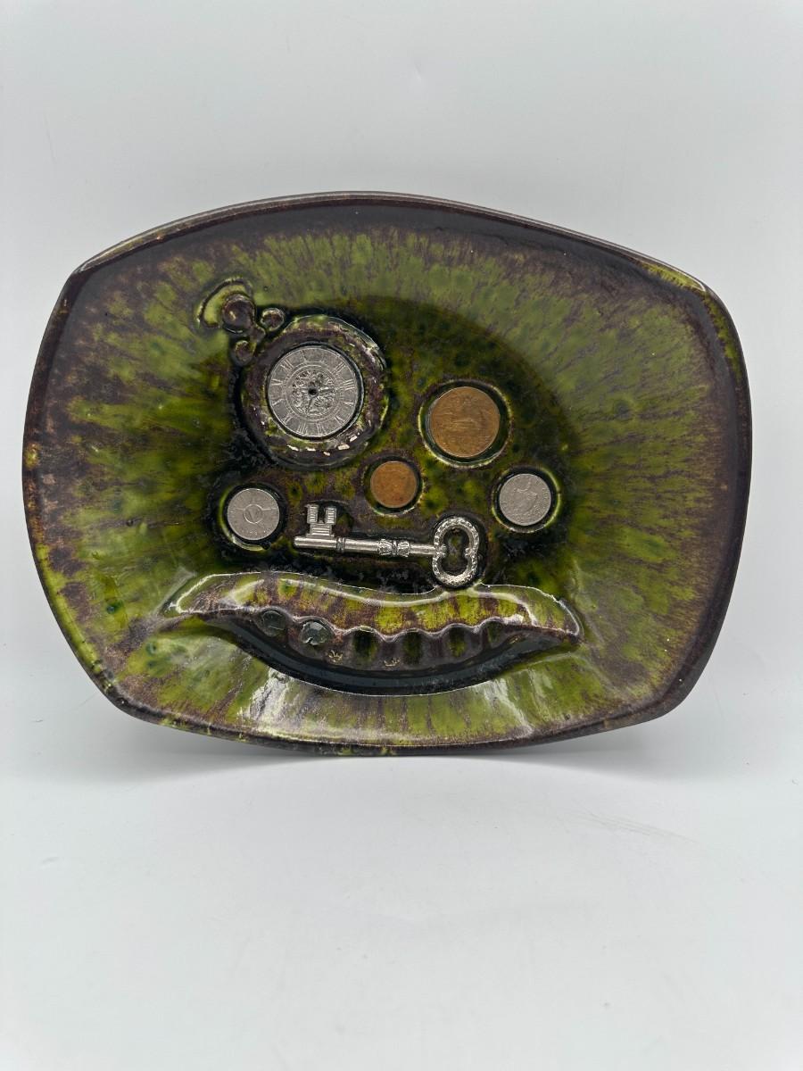 MCM Hayden Lewis Keys & Coins Glazed Pottery Ashtray & Cigarette Box