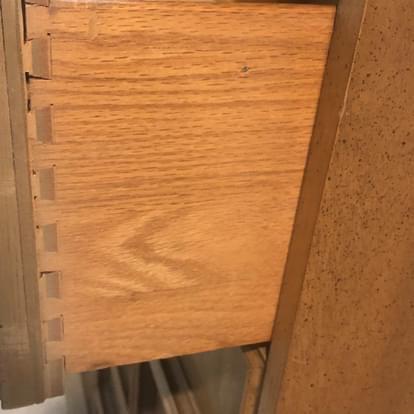 This vintage chest has five deep drawers that glide well. The dresser has wheels under the base, which helps move it. Dovetailed drawers, well made.