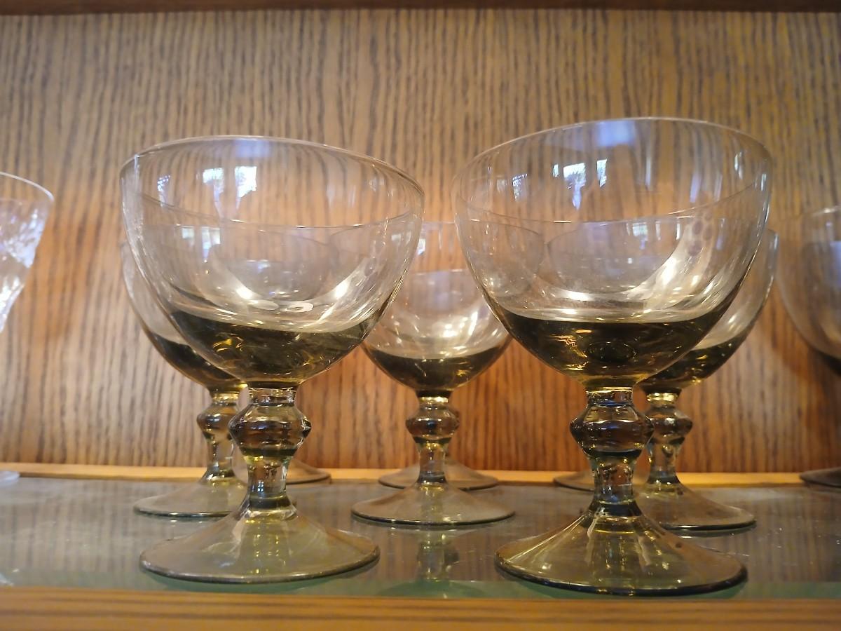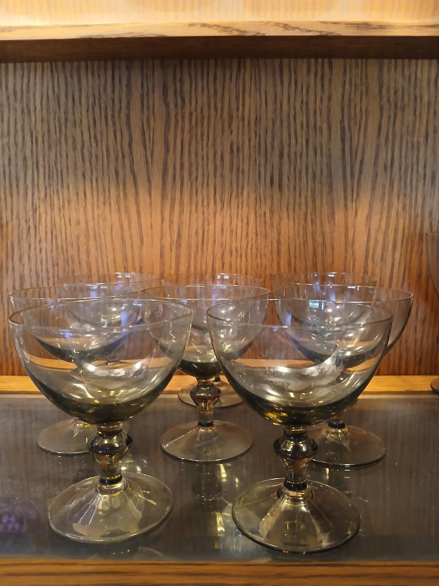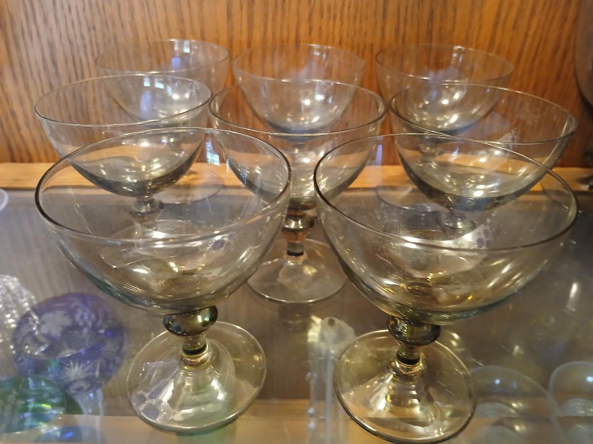 MCM Hollywood Regency 1950's Smoked Crystal Champagne/Sherbet Glasses set of 8