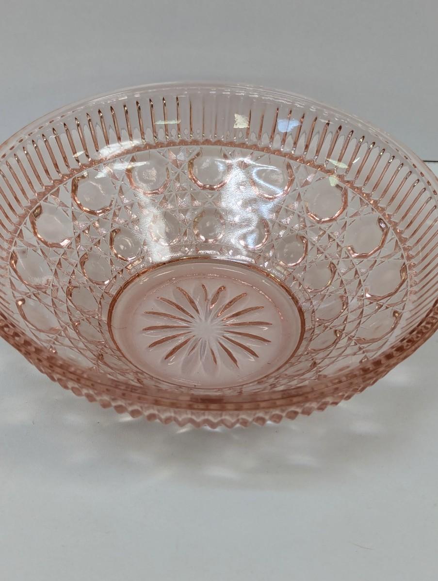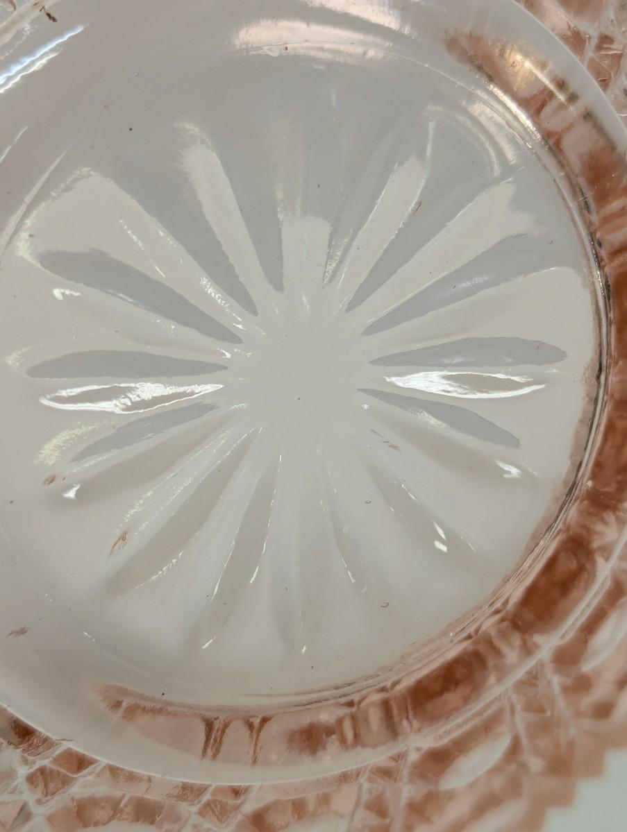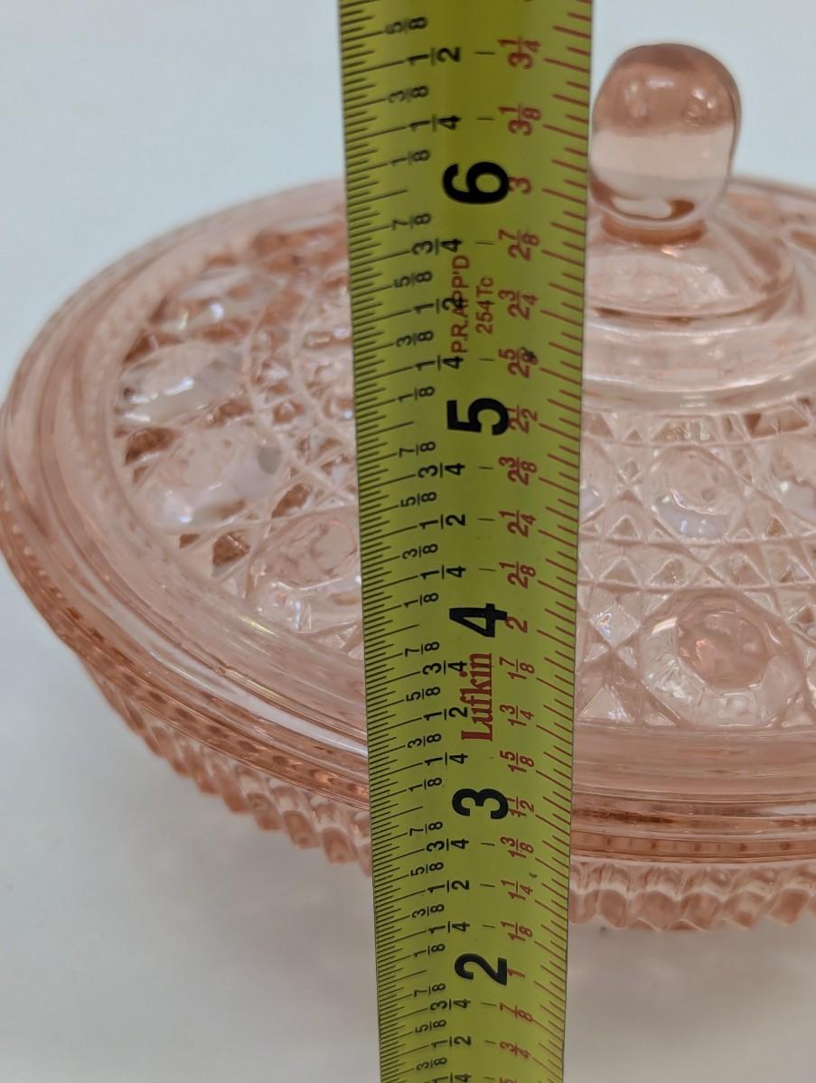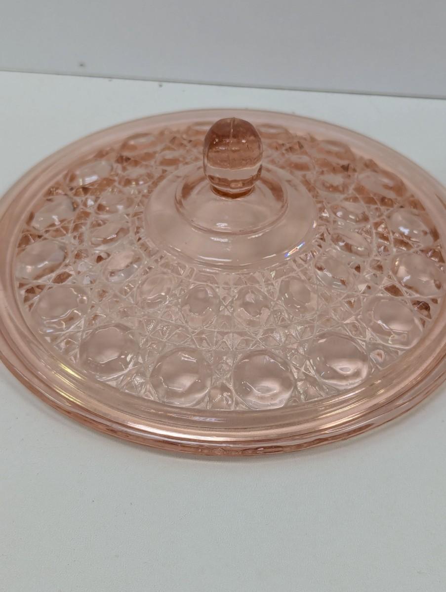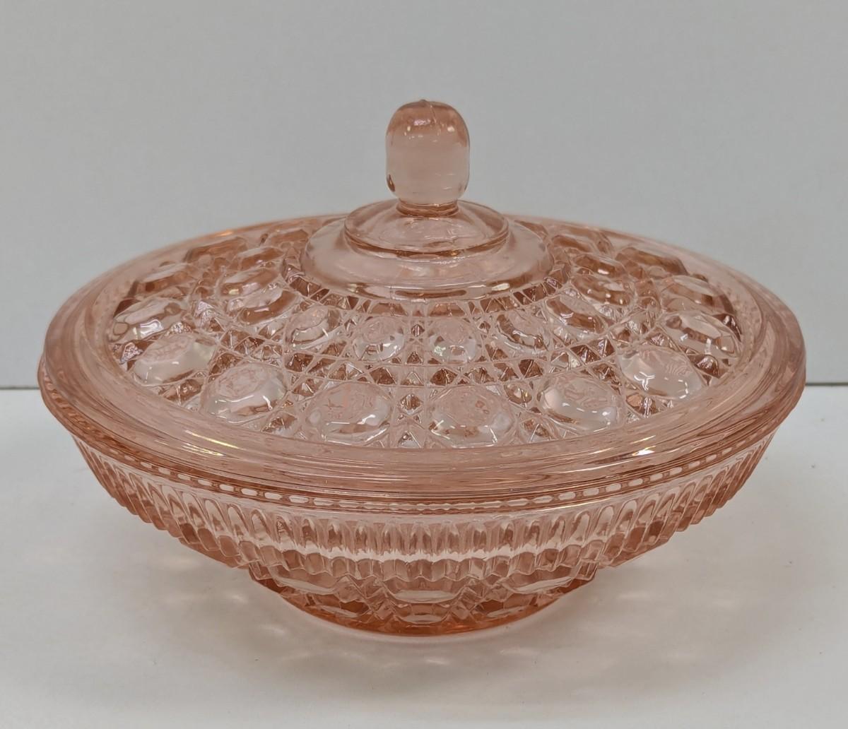 MCM Indiana Peach Ballad Glass Windsor Button & Cane Lidded Candy Dish
