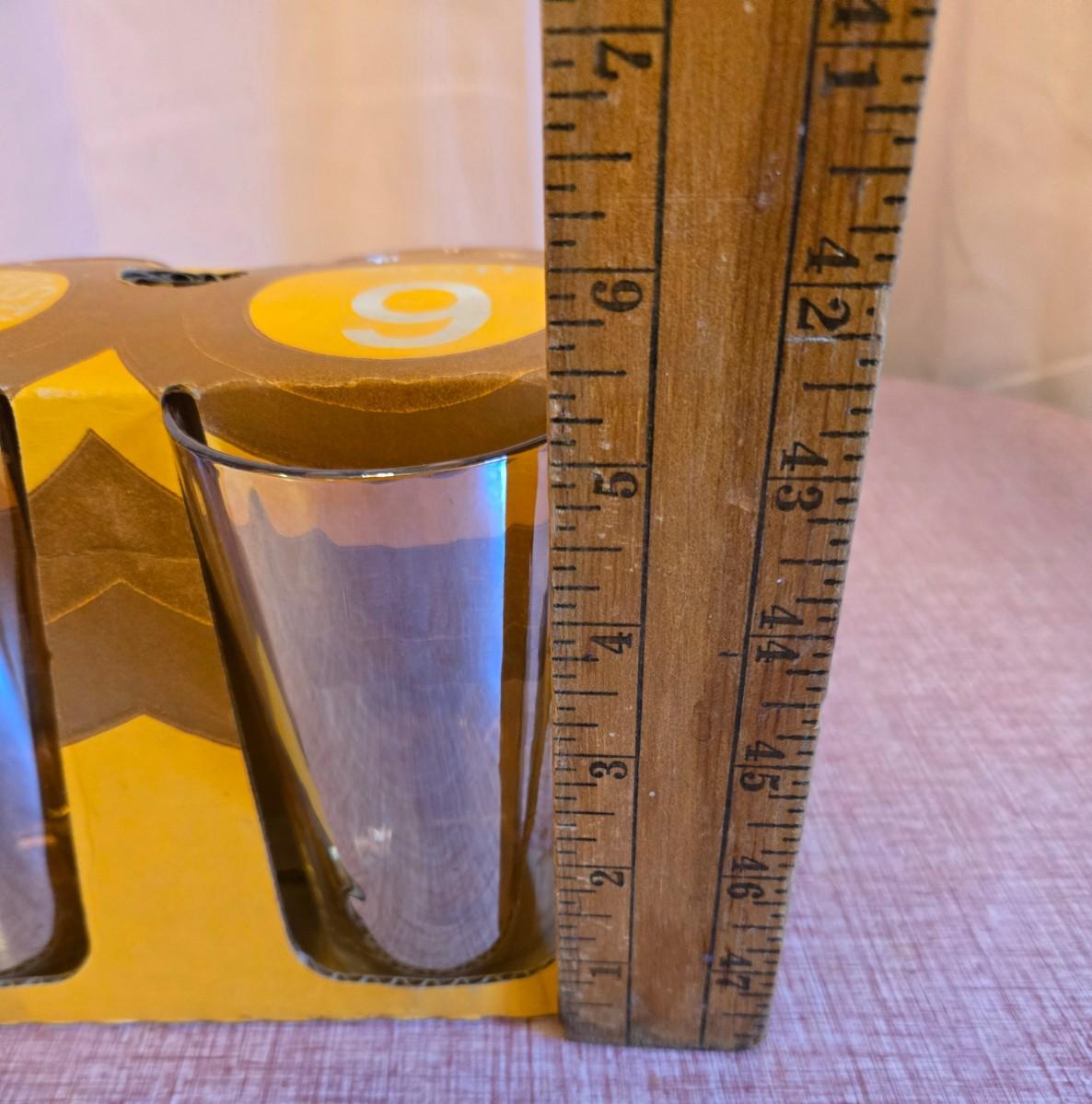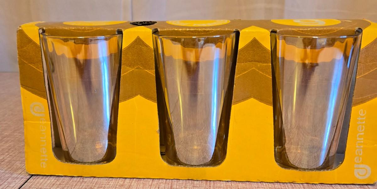 New old stock Jeanette drinking glass set of 6 in marigold color. In original box. 11.5 oz glass