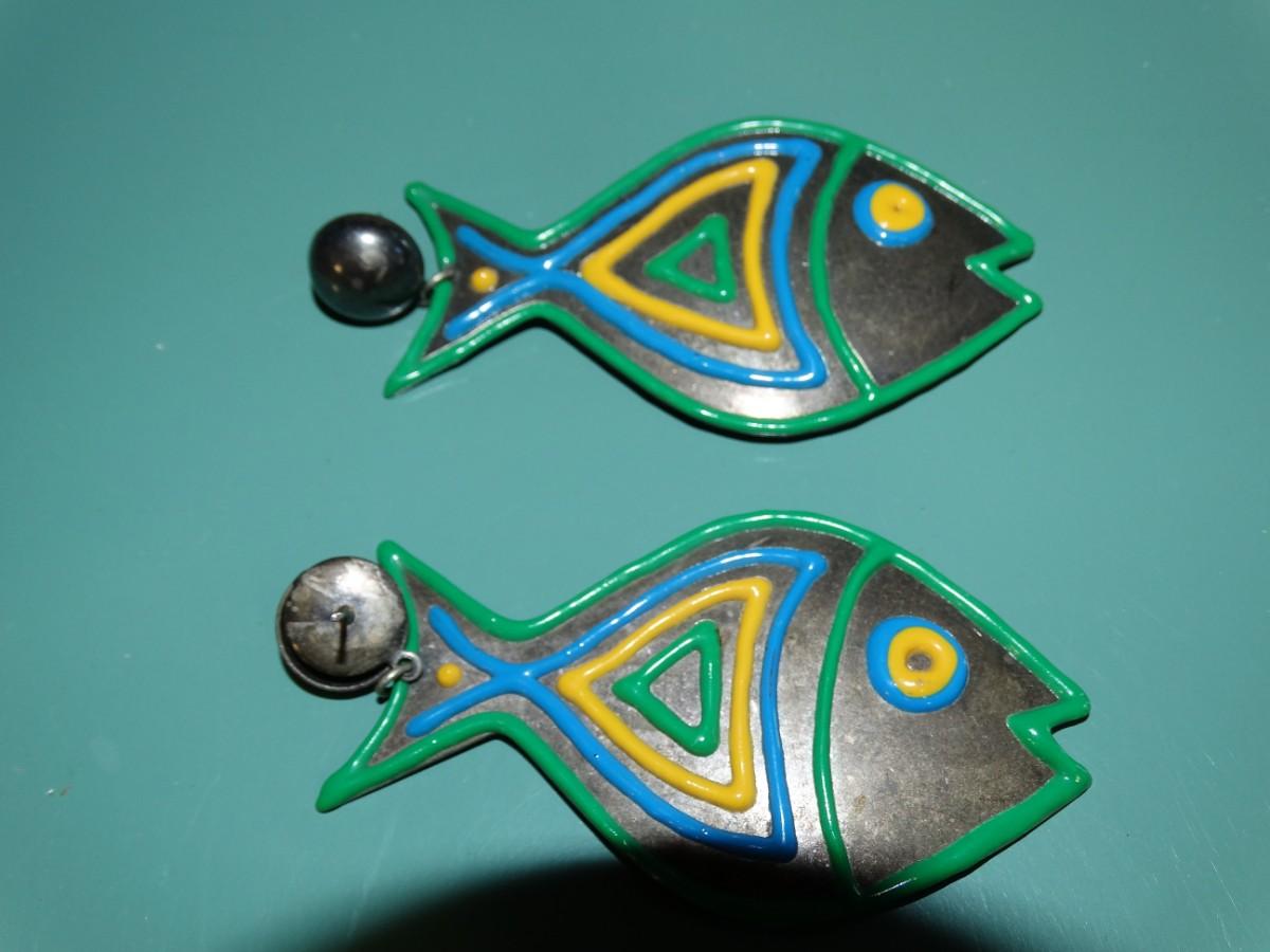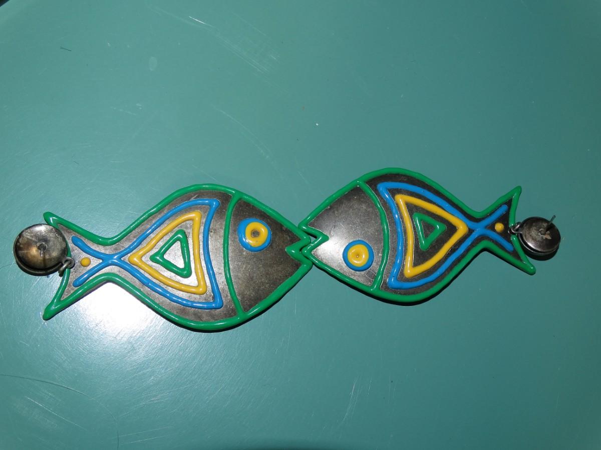 MCM Kissing Fish Dangle Earrings, Metal Fish - (no backs)