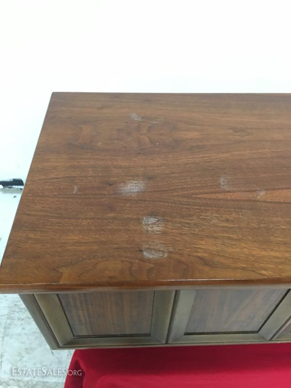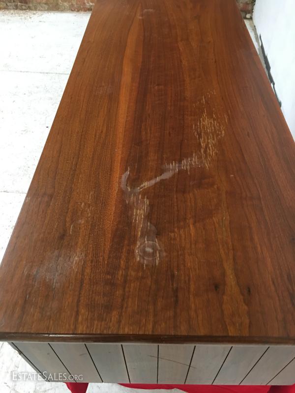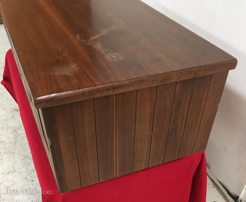 Lame walnut cedar chest nice mid-century modern look, walnut veneer cedar lined. measures 54" long, 15" tall and 19" wide.