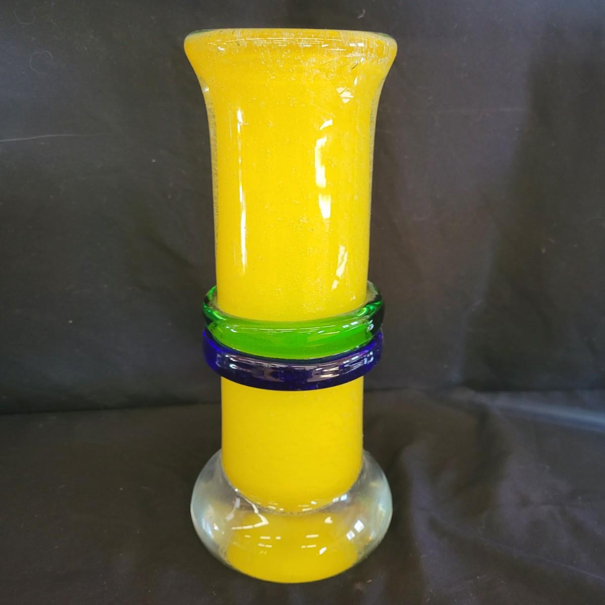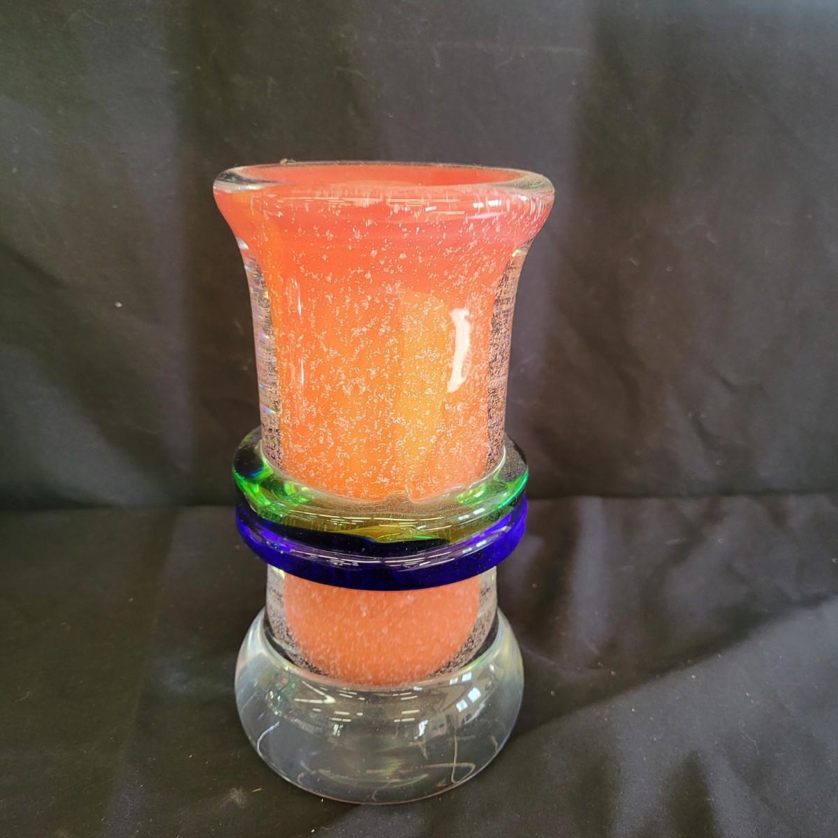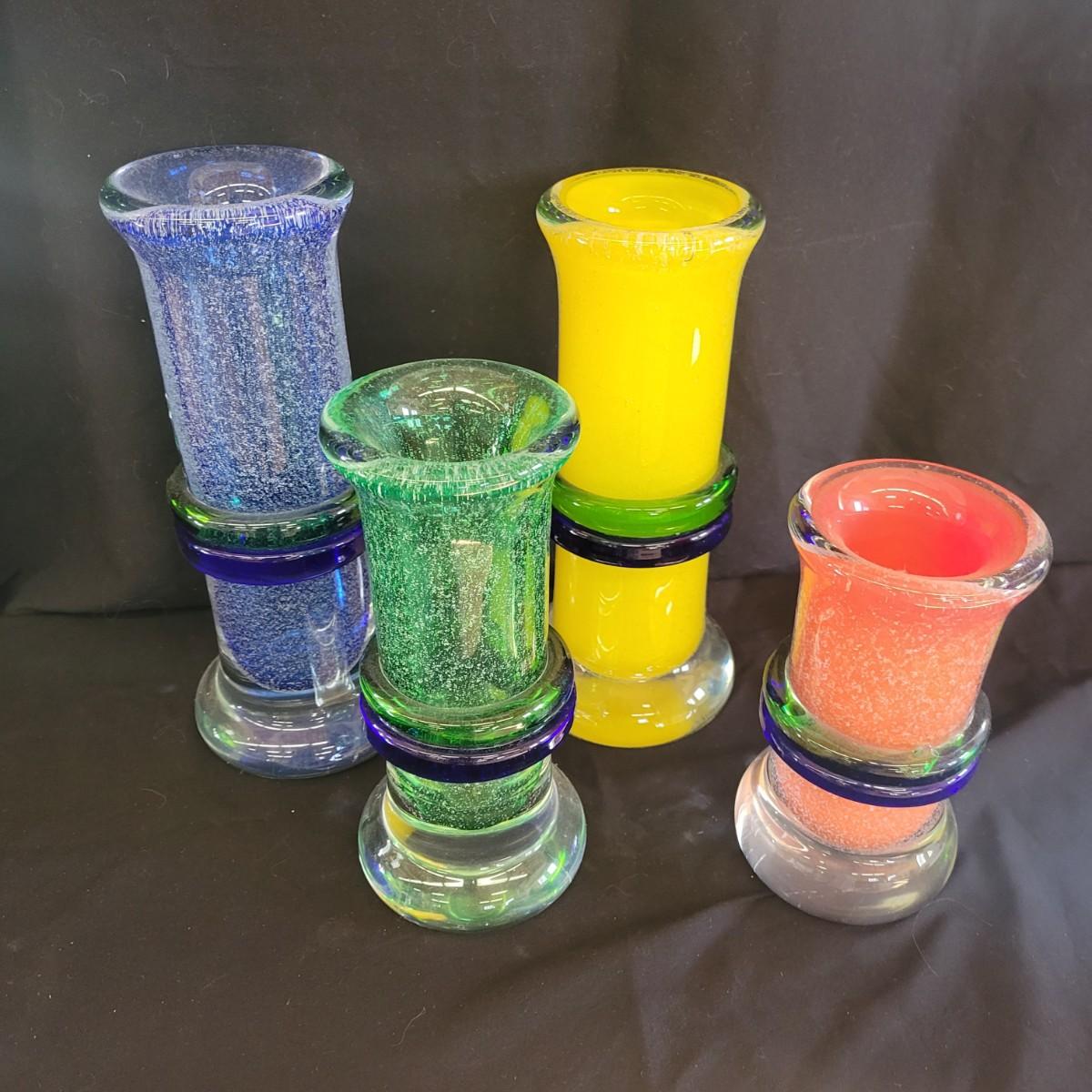 Four MCM glass vases manufactured by Czech Libera. Included are four heavy MCM glass vases in different colors. The largest blue vase measures approximately 4.5"D x 11"H. Shipping available. Shipping art can be costly. We suggest contacting our preferred local shipping provider, Postage Express, with dimensions and getting an estimate before bidding: (828) 670-5501 or postageexpress@yahoo.com.