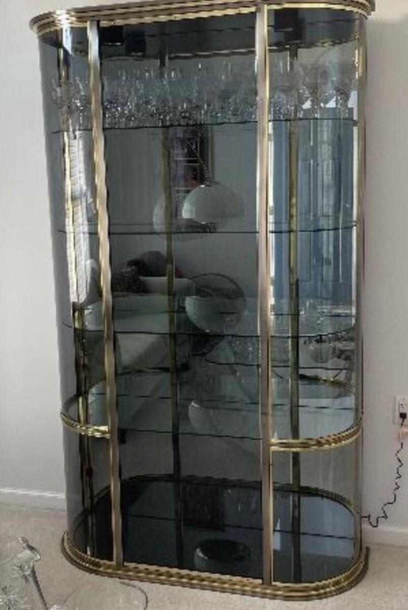 Patina Brass, Gun Metal & smoked Glass Vitrine made by Design Institute America in 1985.