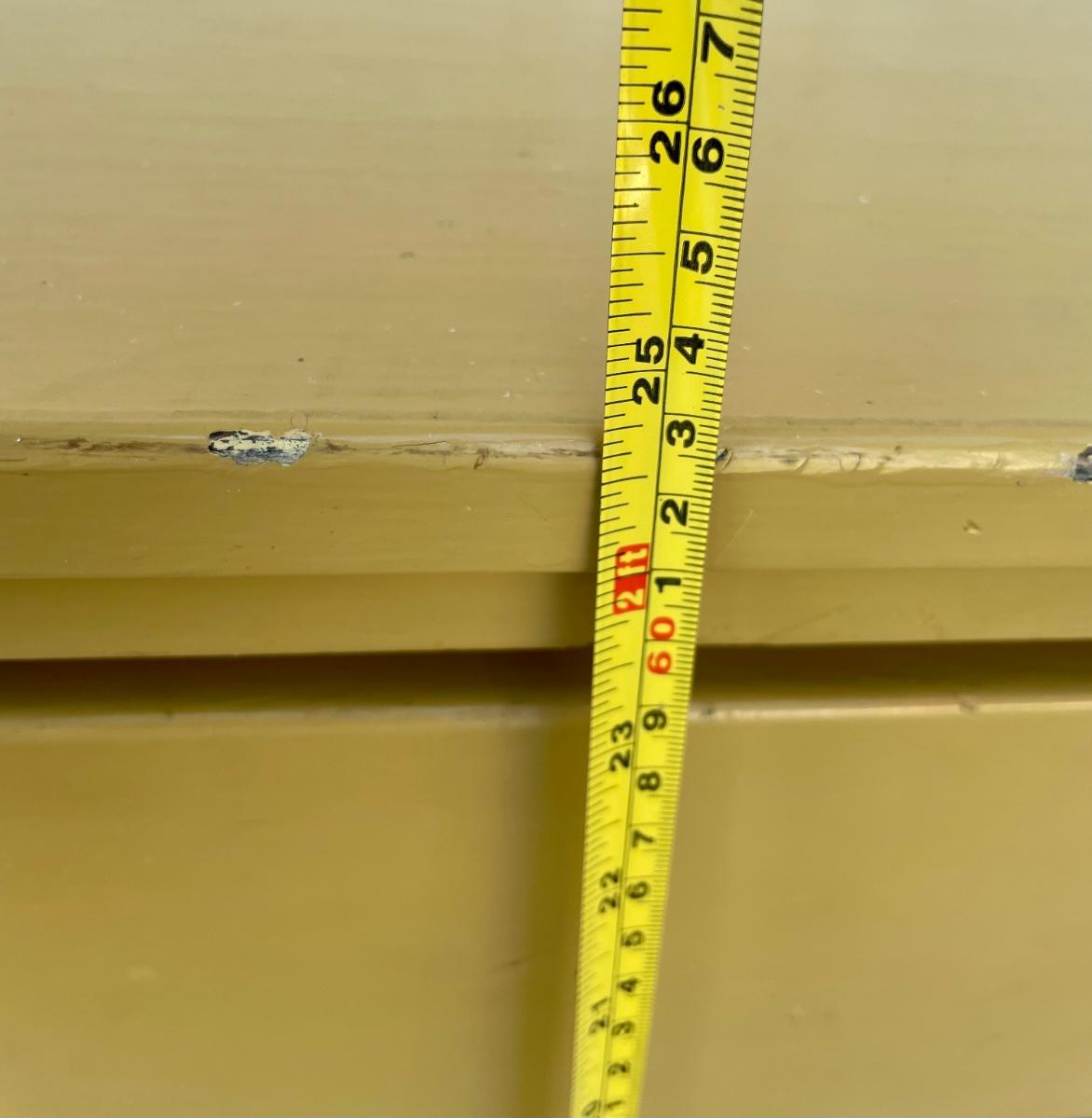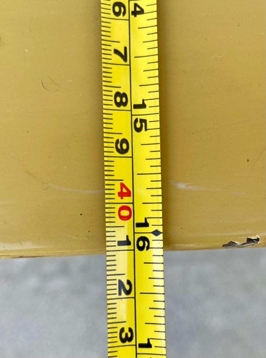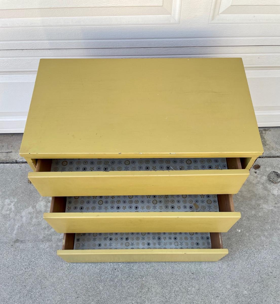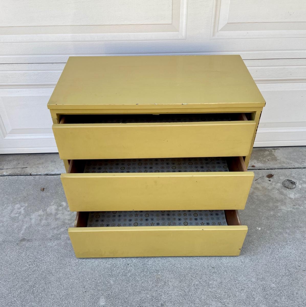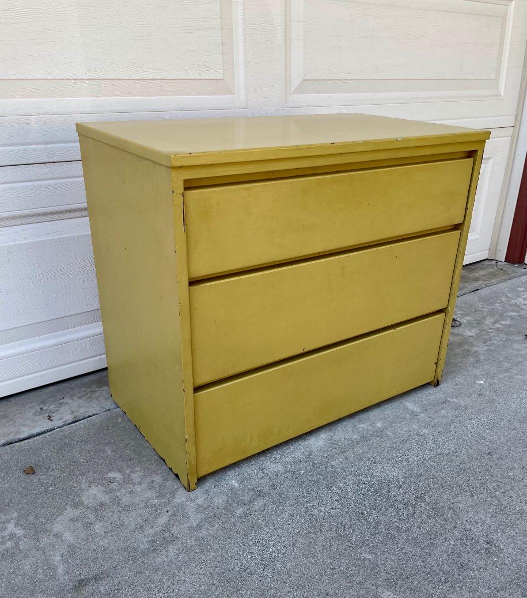 MCM dresser repaired in a semi gloss harvest gold. Approx 25” tall x 40” wide x 16” deep.
