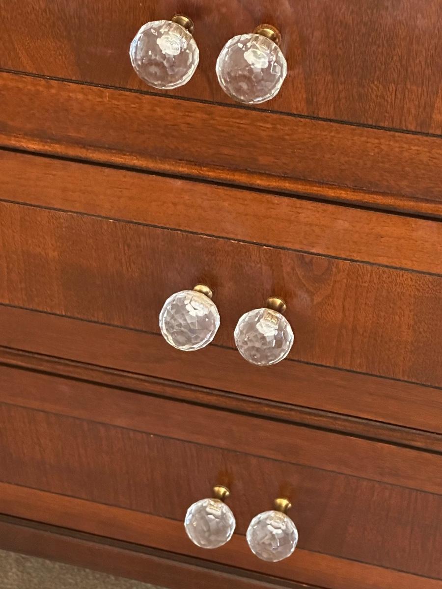 Both are in Great Condition ~ Dresser has 6 Drawers that slide easily and measures 31” H x 52” W x 18” D ~ Bachelors chest has three drawers, all slide easily and measures 31.5” H x 30” W x 18”D ~ knobs are not original ~ no brand name found