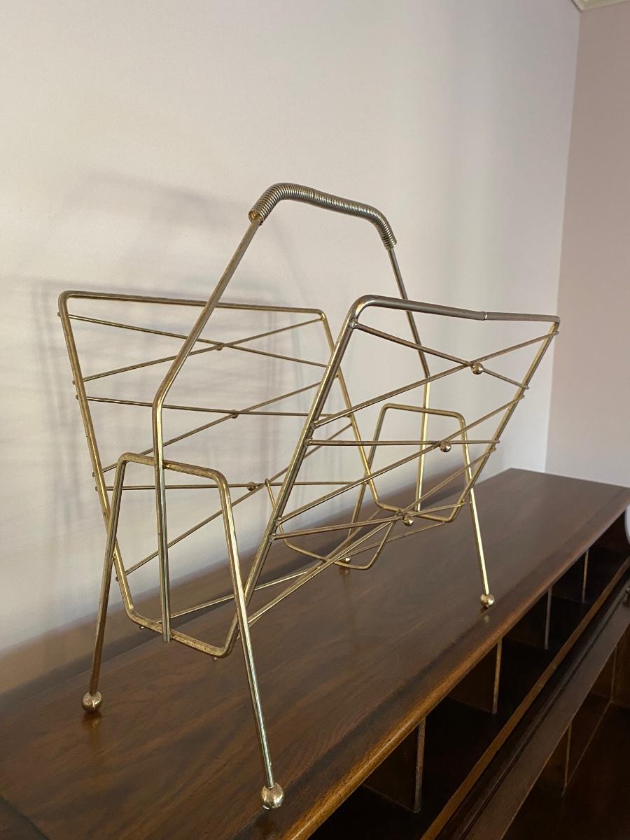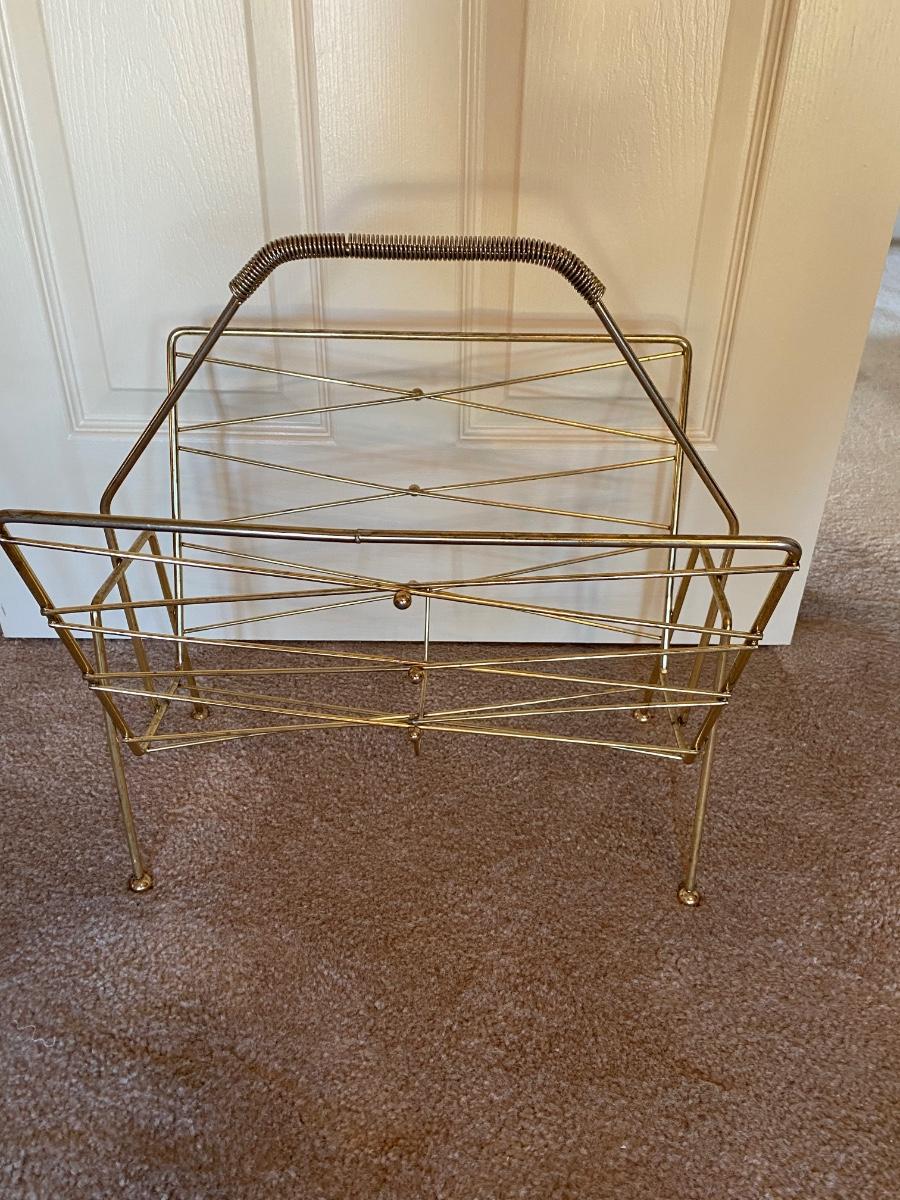 MCM metal magazine rack. Approx 15-3/4w x 16h x 11-3/4d