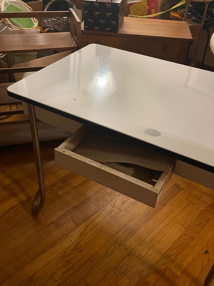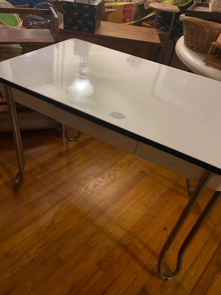 MCM metal top desk Vintage 1930’s Enamel Top
