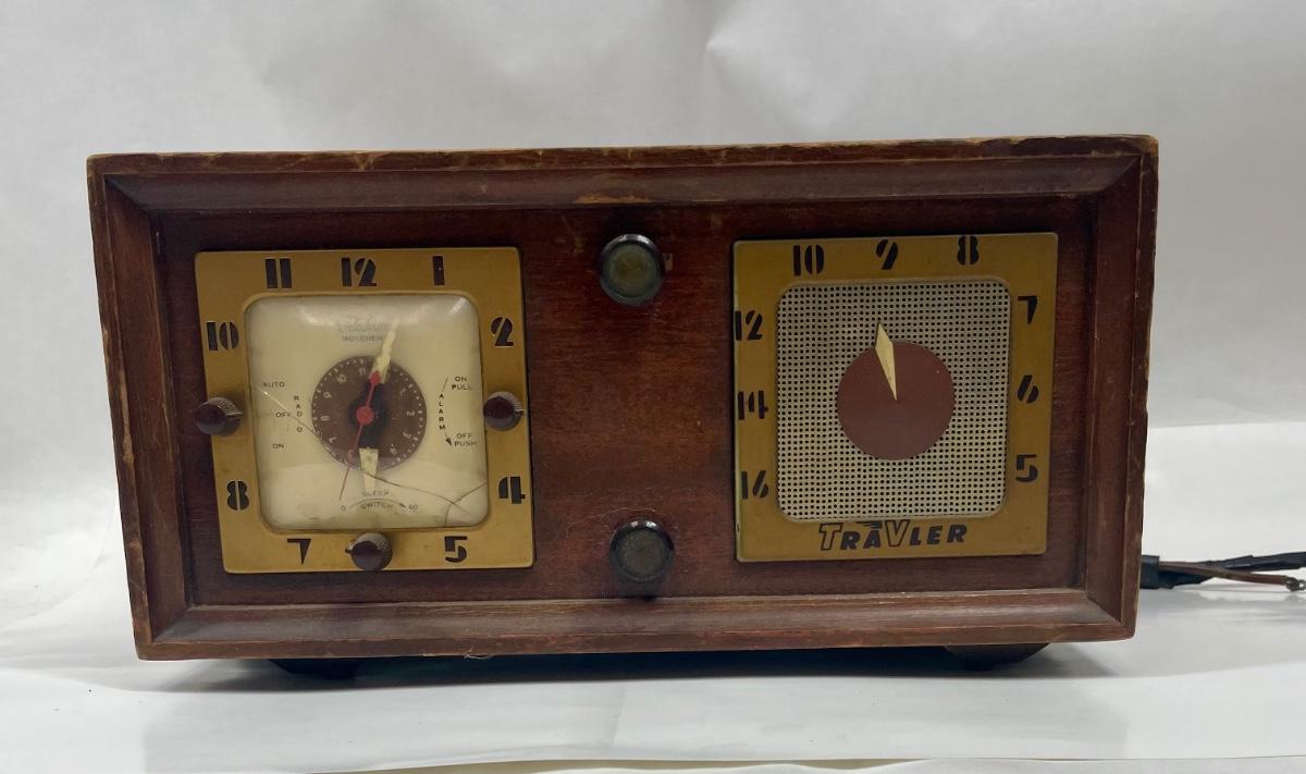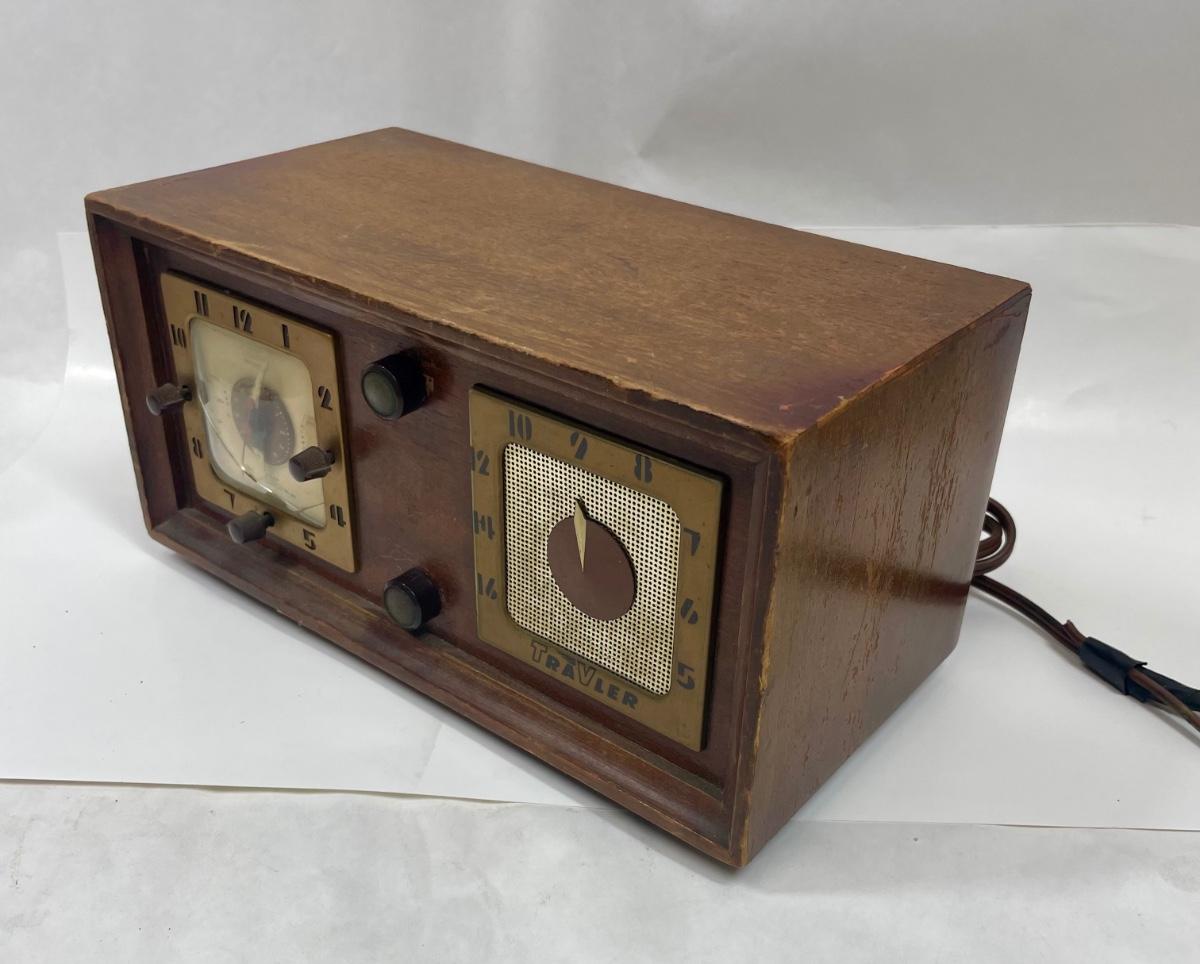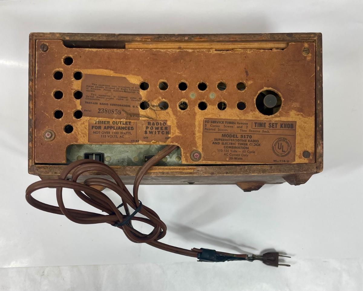 Vintage MCM TRAV-LER Clock Radio Electric Model 5170 Wood