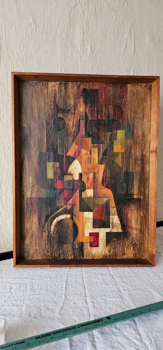 MCM Mid-century Modern painting Abstract signed J Rifkin