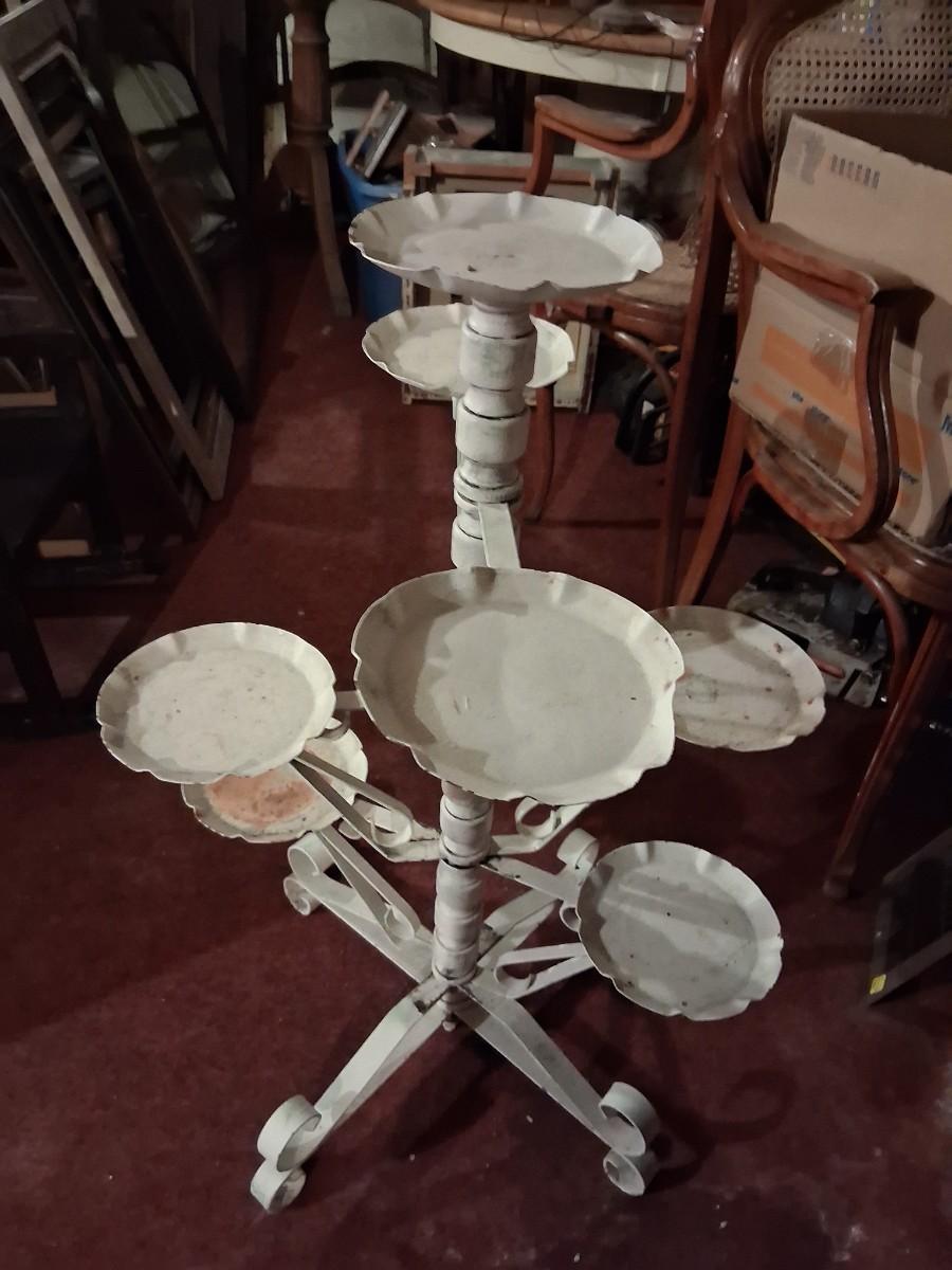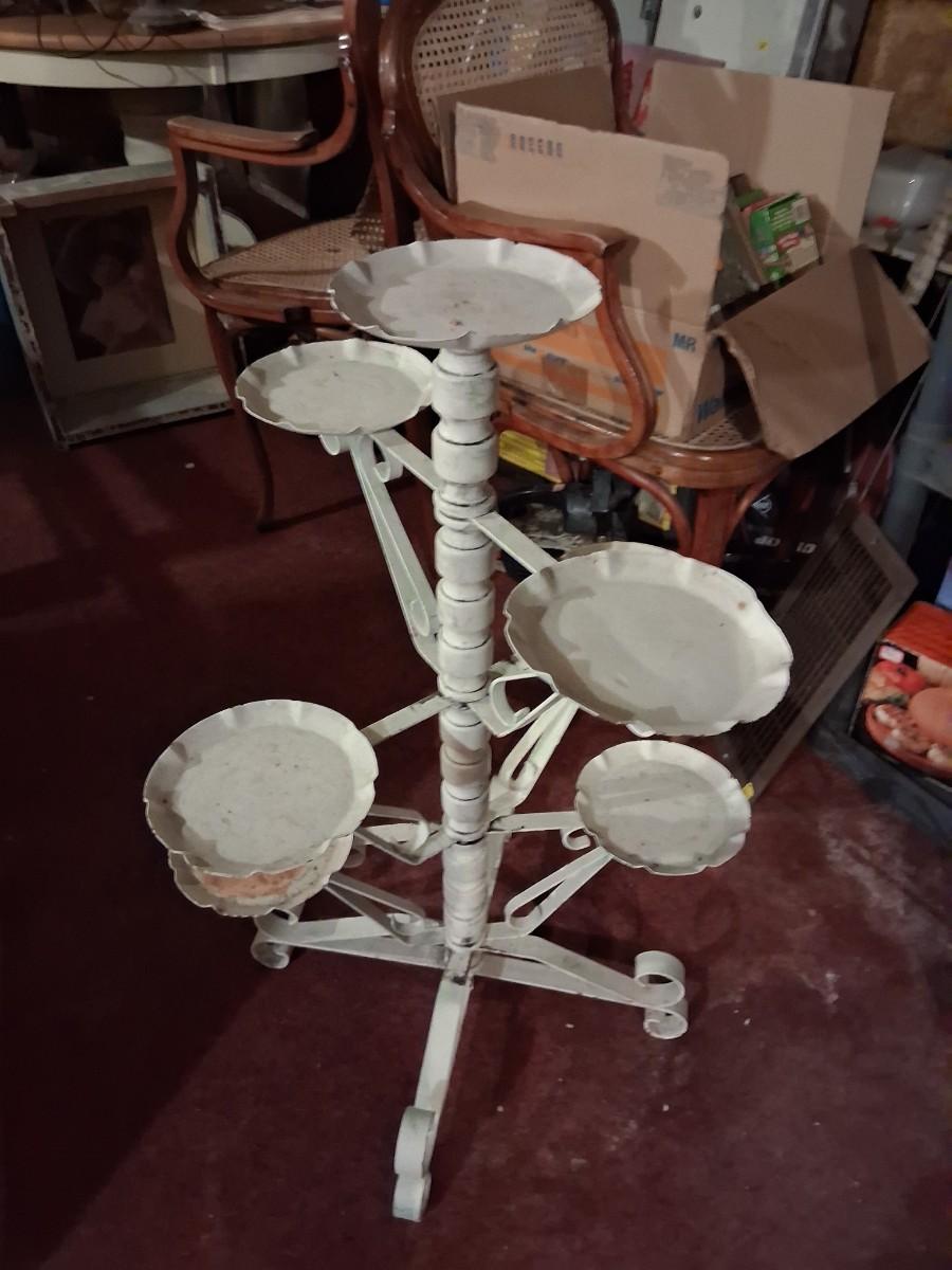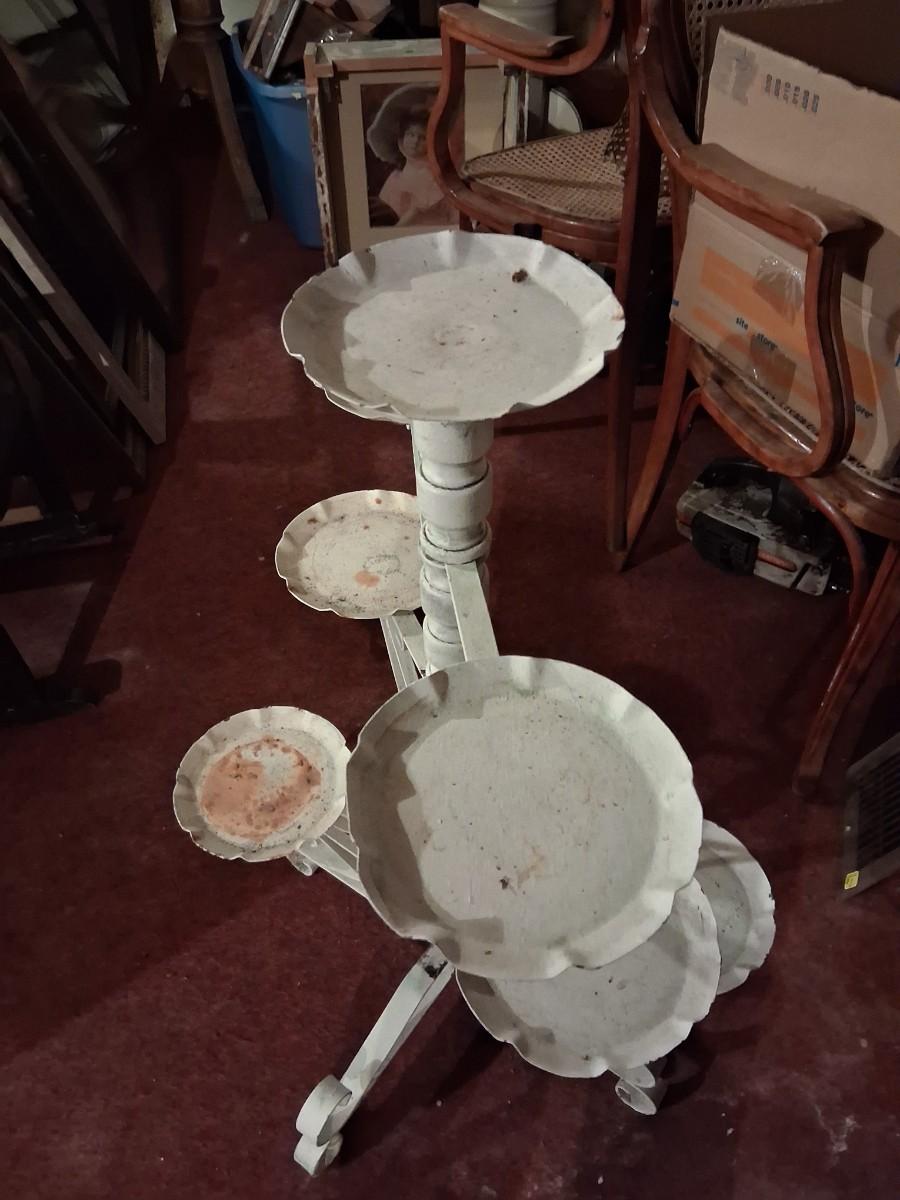 1970s Multi tier, & this item comes completely apart. It is in great condition, wood & metal. There is some paint loss. 32" tall.
