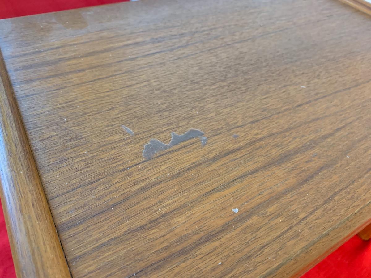 Largest table is 26” long x 14” deep x 19” tall. Good condition (something dripped on the side of 2 smaller tables, should be cleanable), minor wear, lightweight. No brand name, numbered A175 on bottoms.