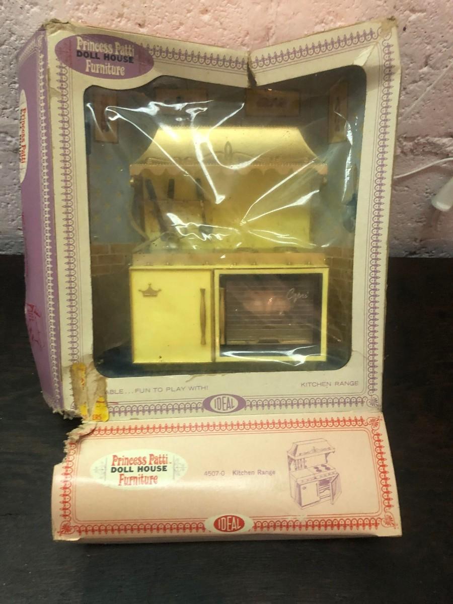 MCM NOS Princess Patti Doll House Furniture from Ideal. Rare Kitchen Range. Box in rough condition, see pics.