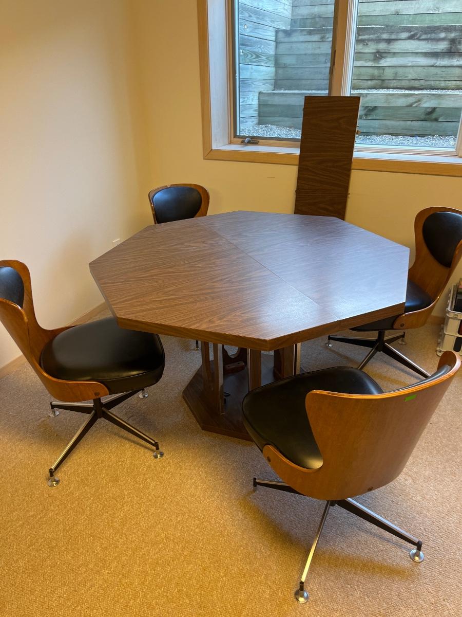 MCM octagon table with 4 Bentwood/vinyl swivel chairs