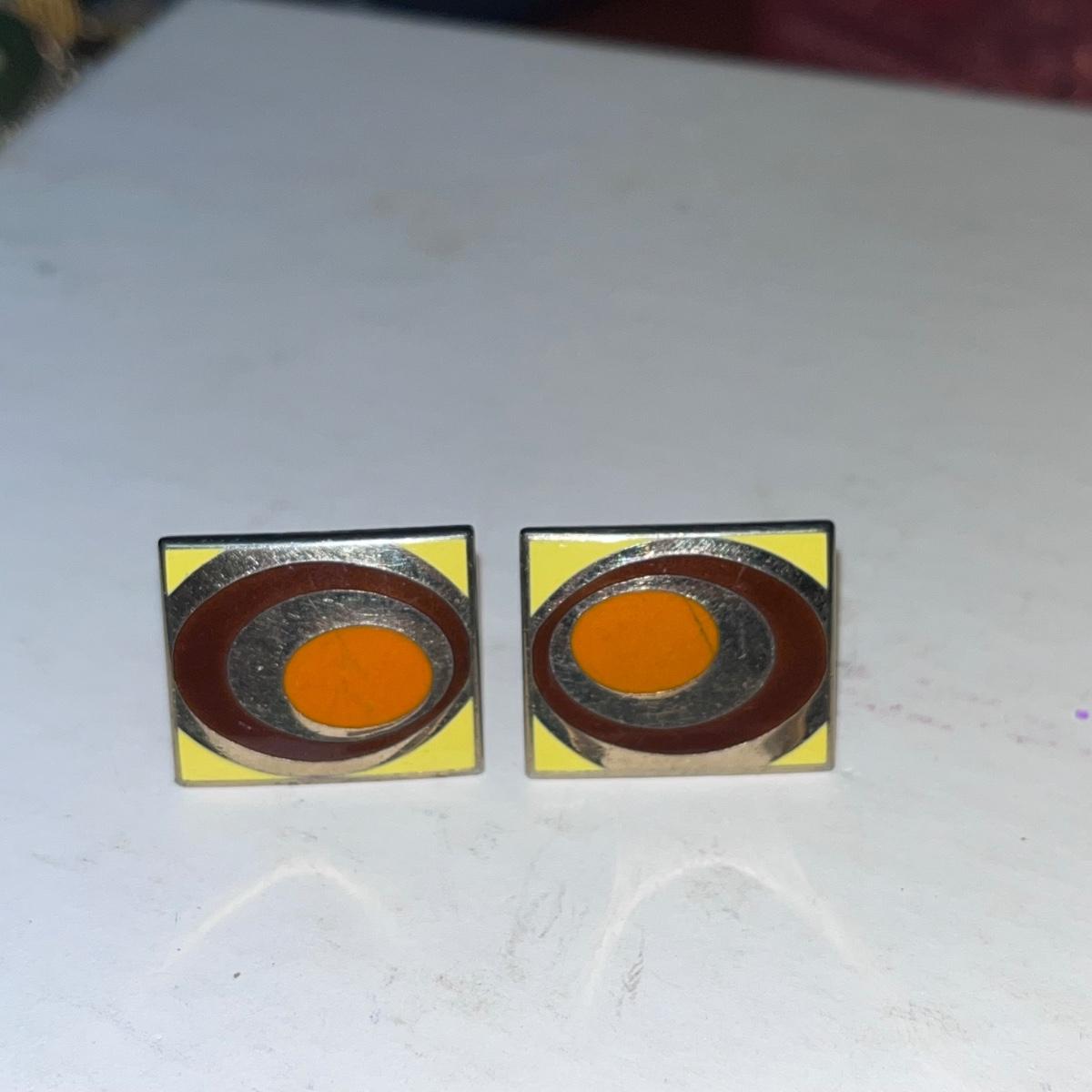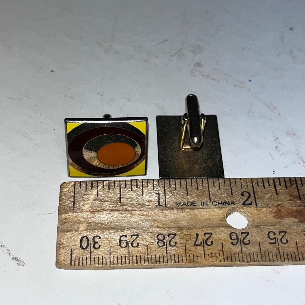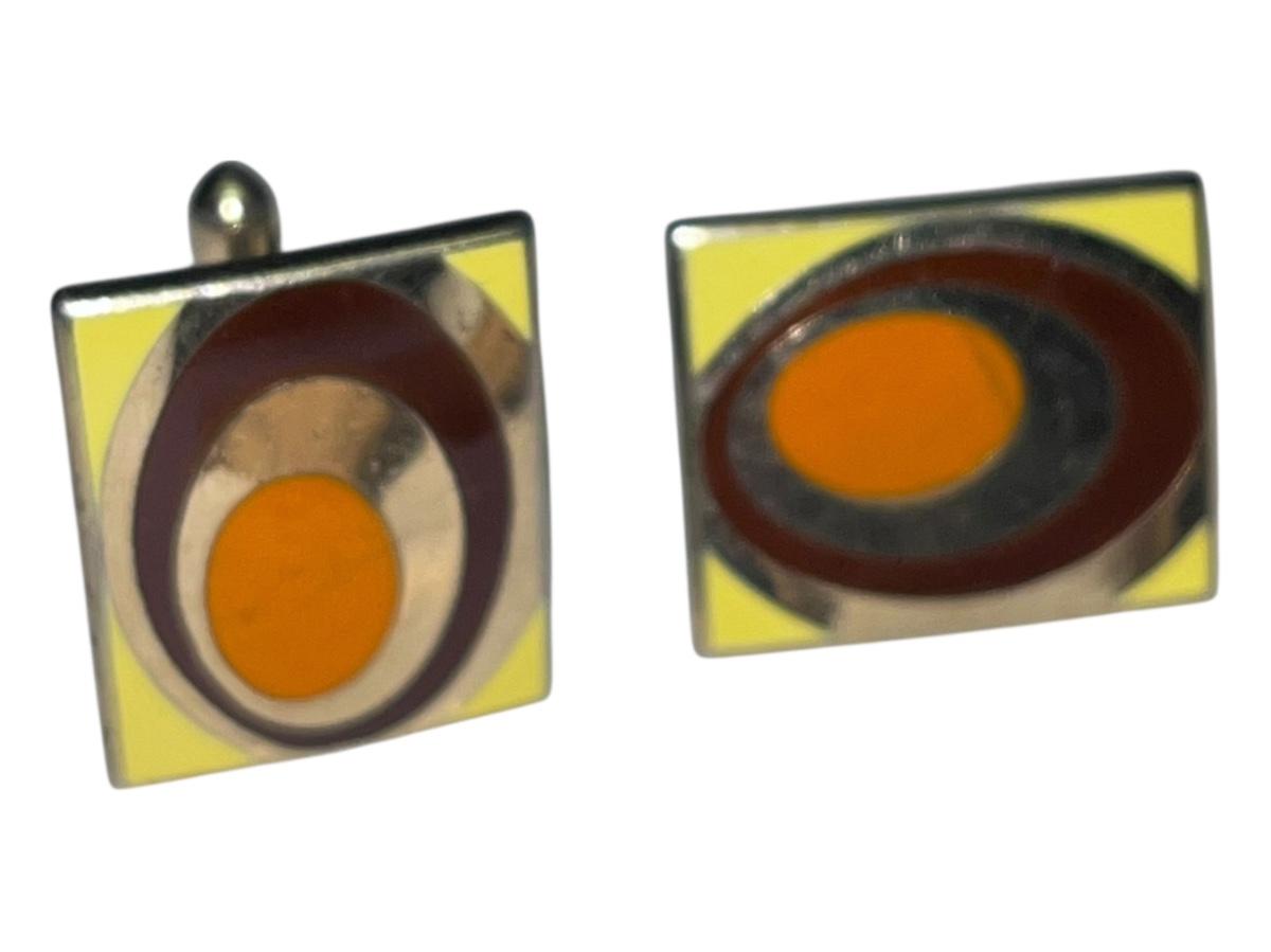 MCM Orange, Yellow Brown Asymmetrical Modern Pop Art Enamel Cufflinks