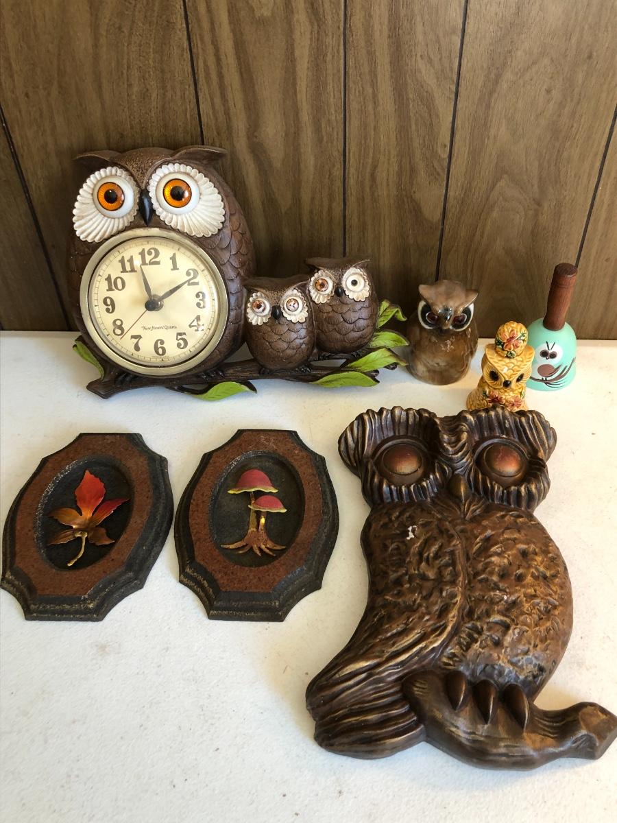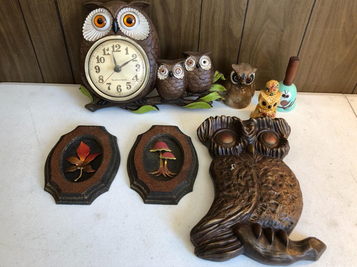 MCM Owl Clock, Owl Wall Hanging, Owl Bells, & Mushroom & Leaf 🍁 Wall Decor