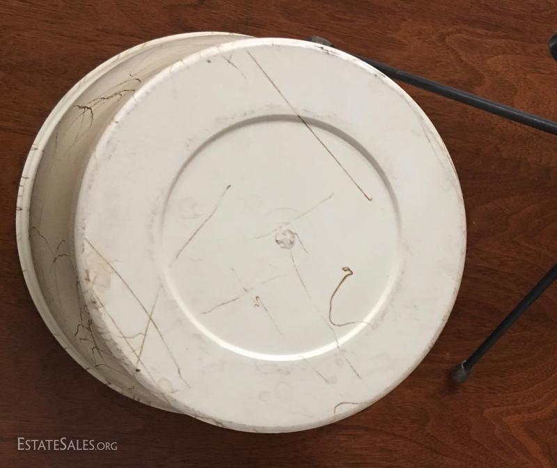 Planter is in good condition plastic or fiberglass with an asymmetrical gols pattern. Measures 17" tall and 9" in diameter.