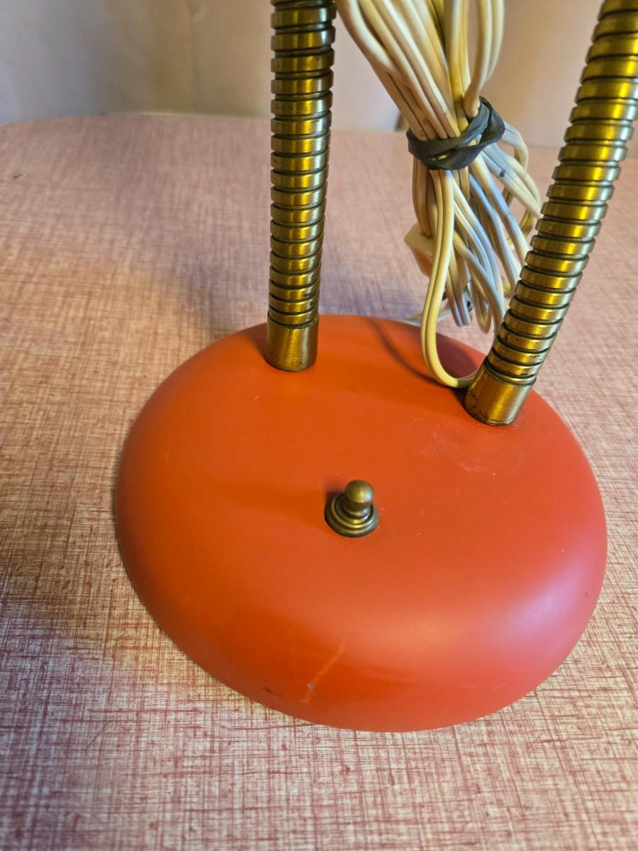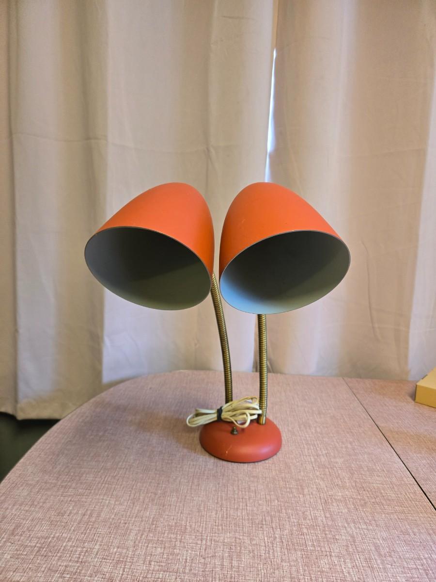 HARD TO FIND Duel head gooseneck desk lamp, adjustable heads, is very red, pic looks orange. Quite heavy metal base & heads.