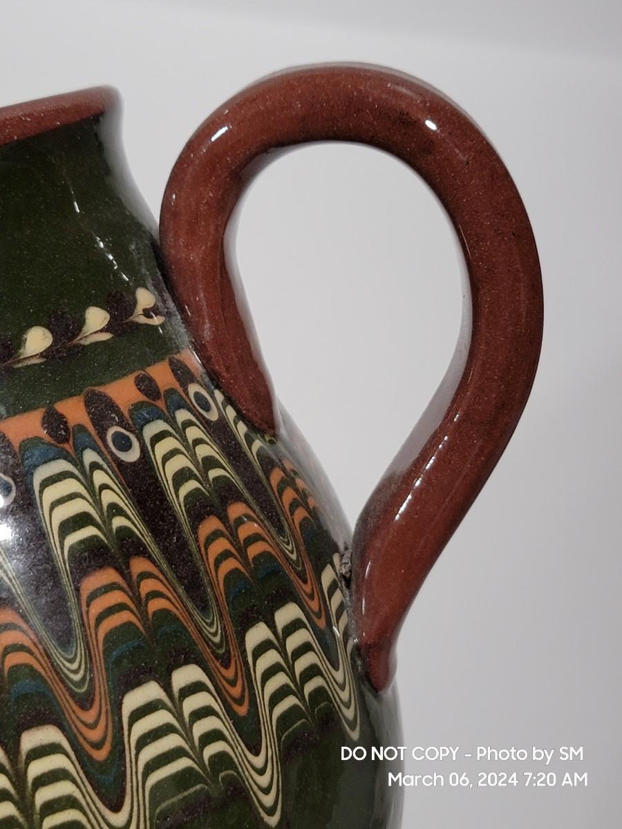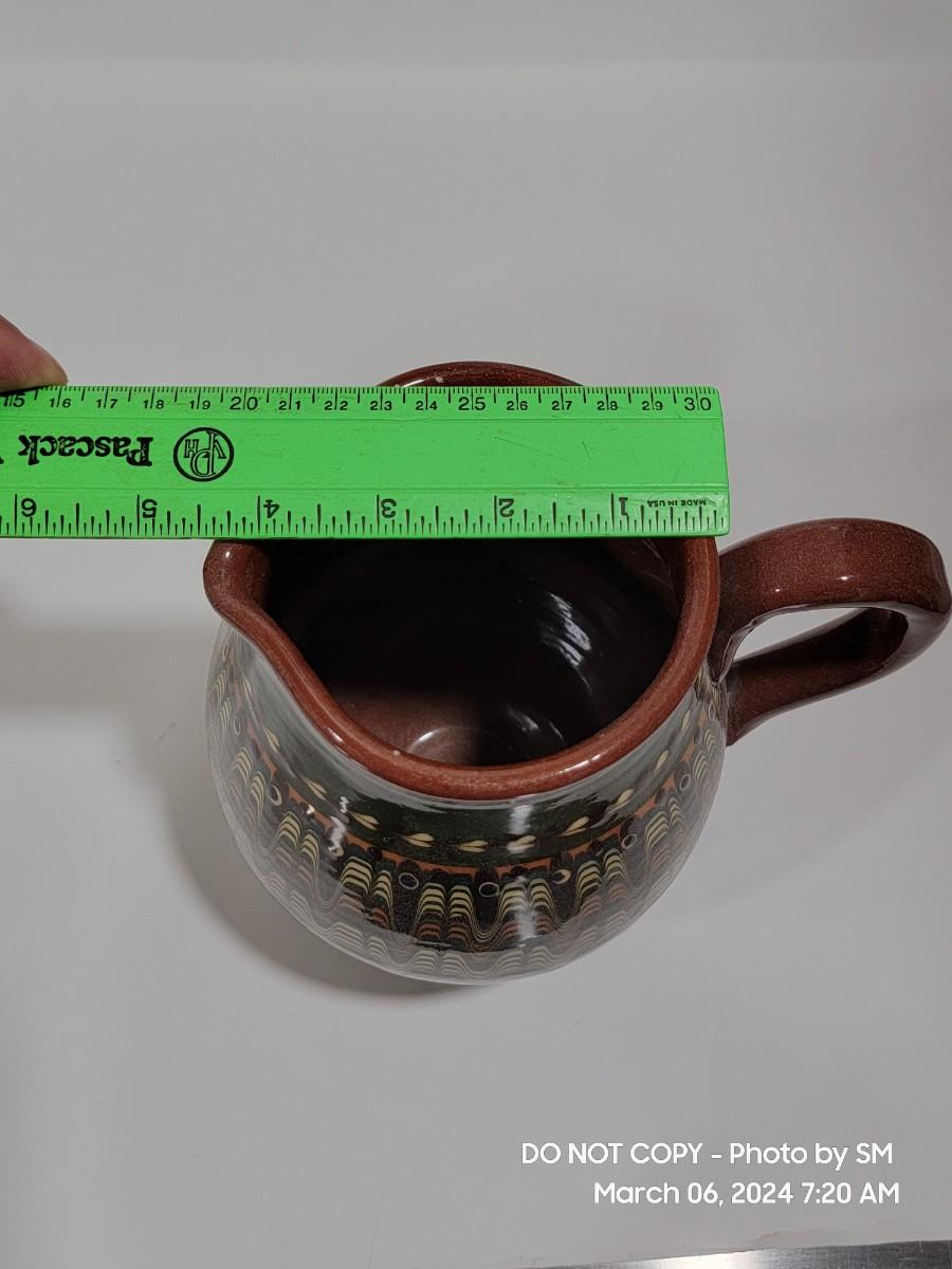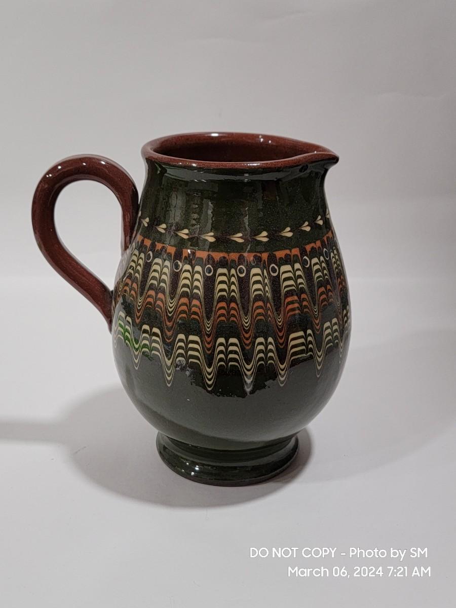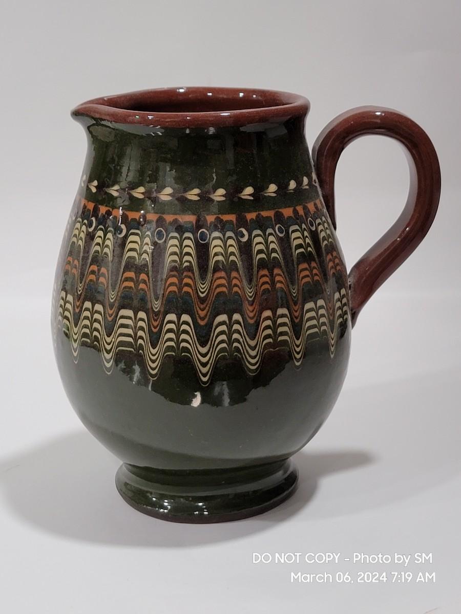 I am unable to make out the makers mark. Unsire if this is glazed pottery or ceramic, either way its a stunning piece. Has the Mid Century and or Retro vibe. This is definitely hand painted. Not sure of actual age.