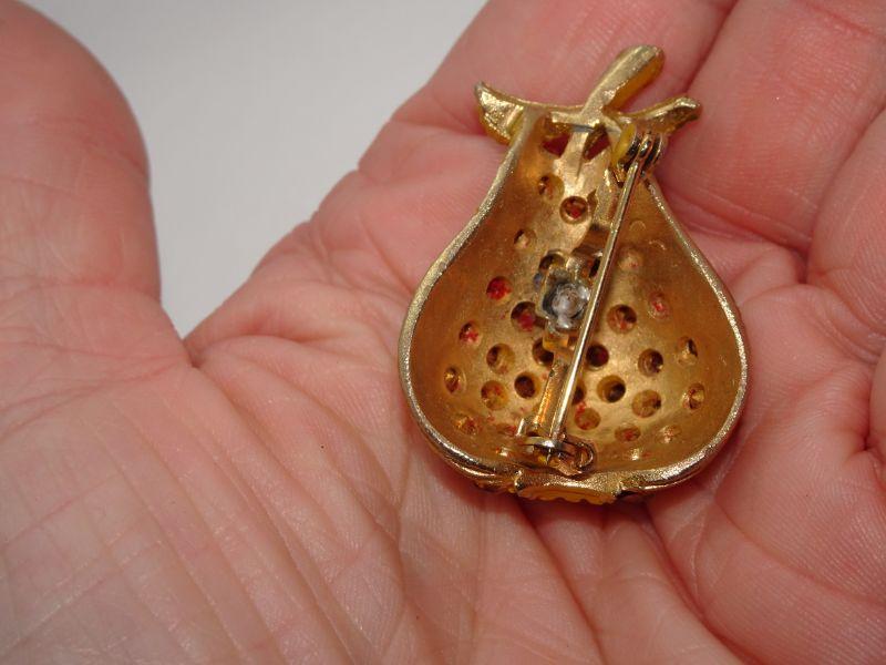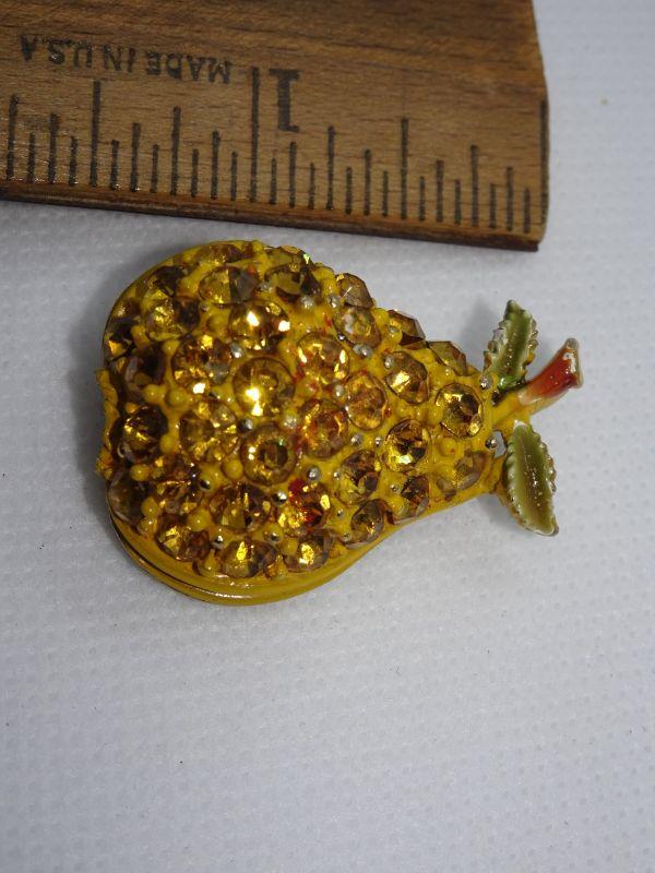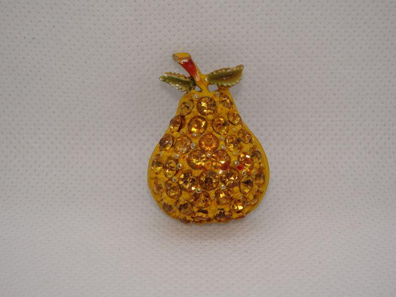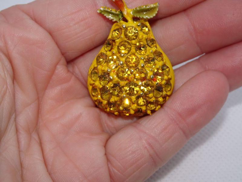 MCM Rhinestone Yellow Pear Pin, Fruit Jewelry