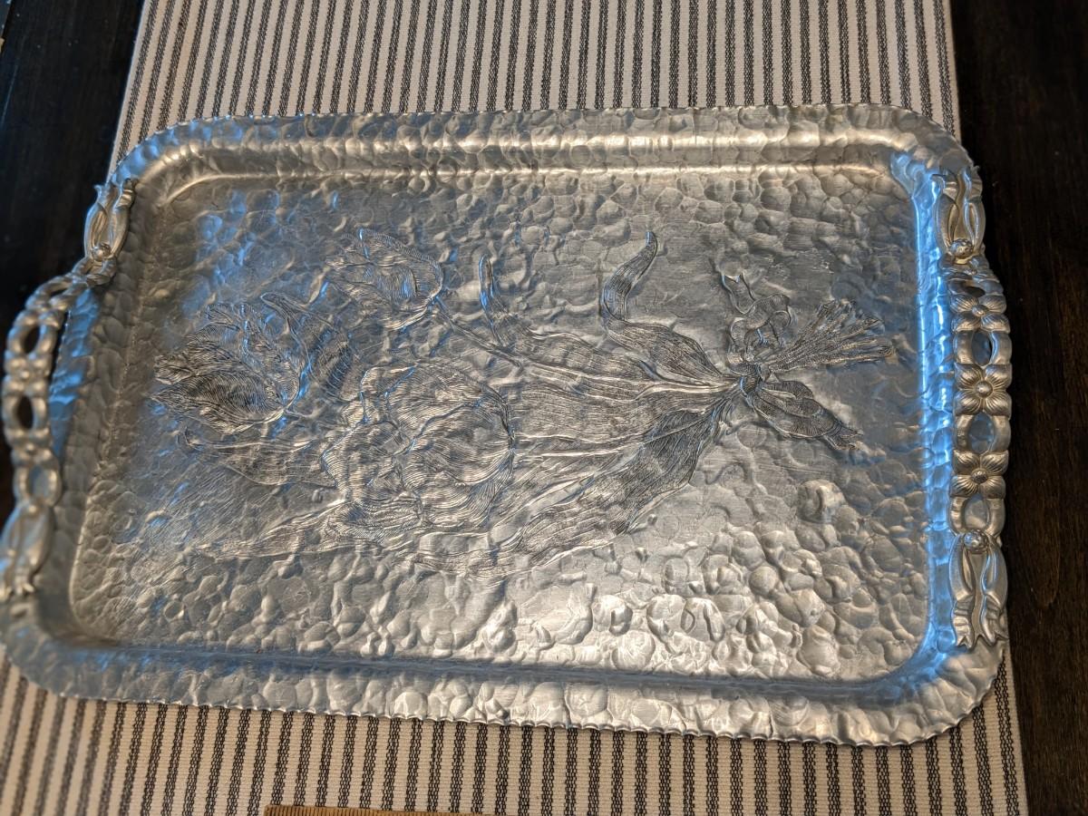 MCM Rodney Kent Hammered Aluminum Tulip Serving Tray