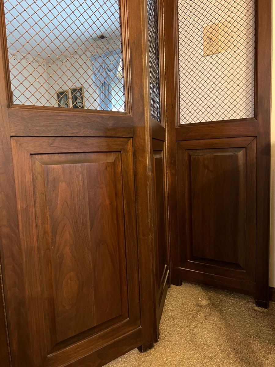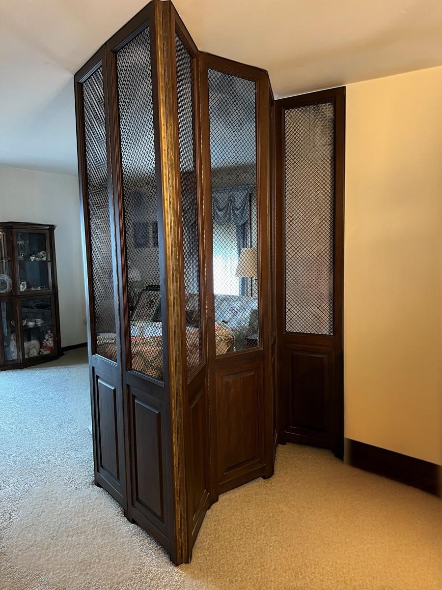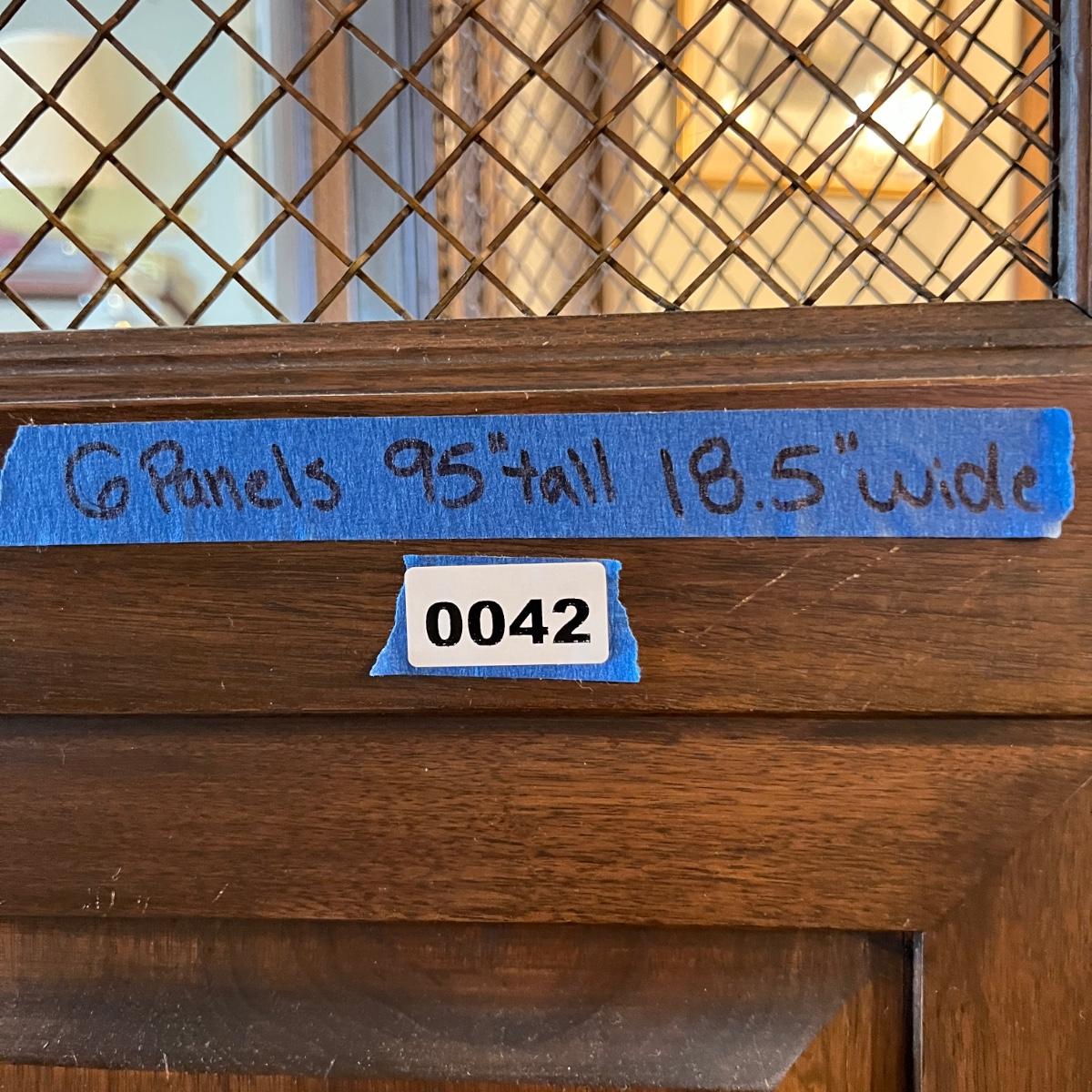 6 panels - each panel measuring 95" tall and 18.5" wide. Each panel does bend in an accordion fan style. But the picture shows 2 panels standing straight. NOTE: This is very heavy. The winner will need to bring help to remove it from the house. Buying "as is - as found" in this wonderful estate. See ALL PHOTOS for content, condition, & dimensions. NEVER a Buyer's Premium or Credit Card Fee added.