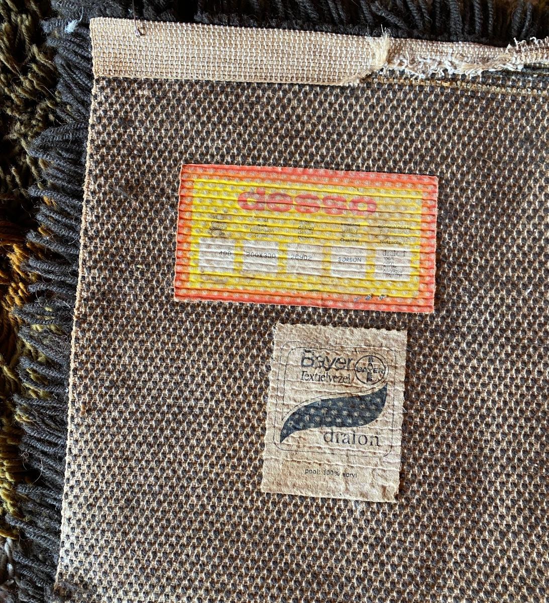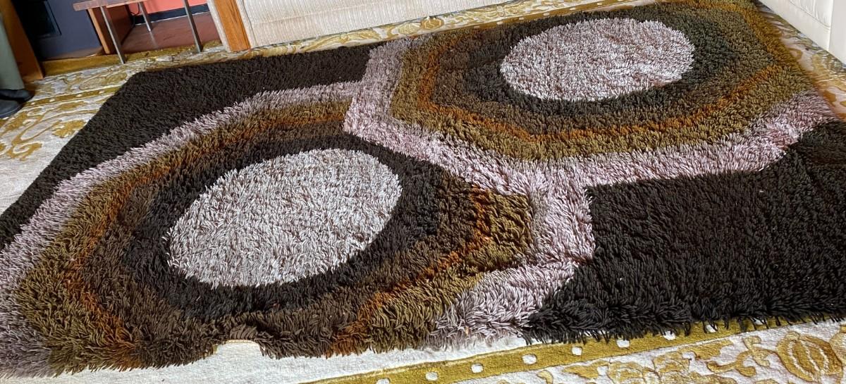 Mid Century brown abstract rug - will need cleaning. Has pet urine stains