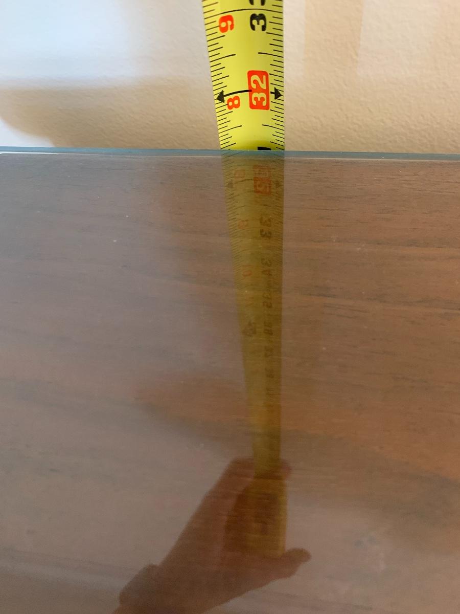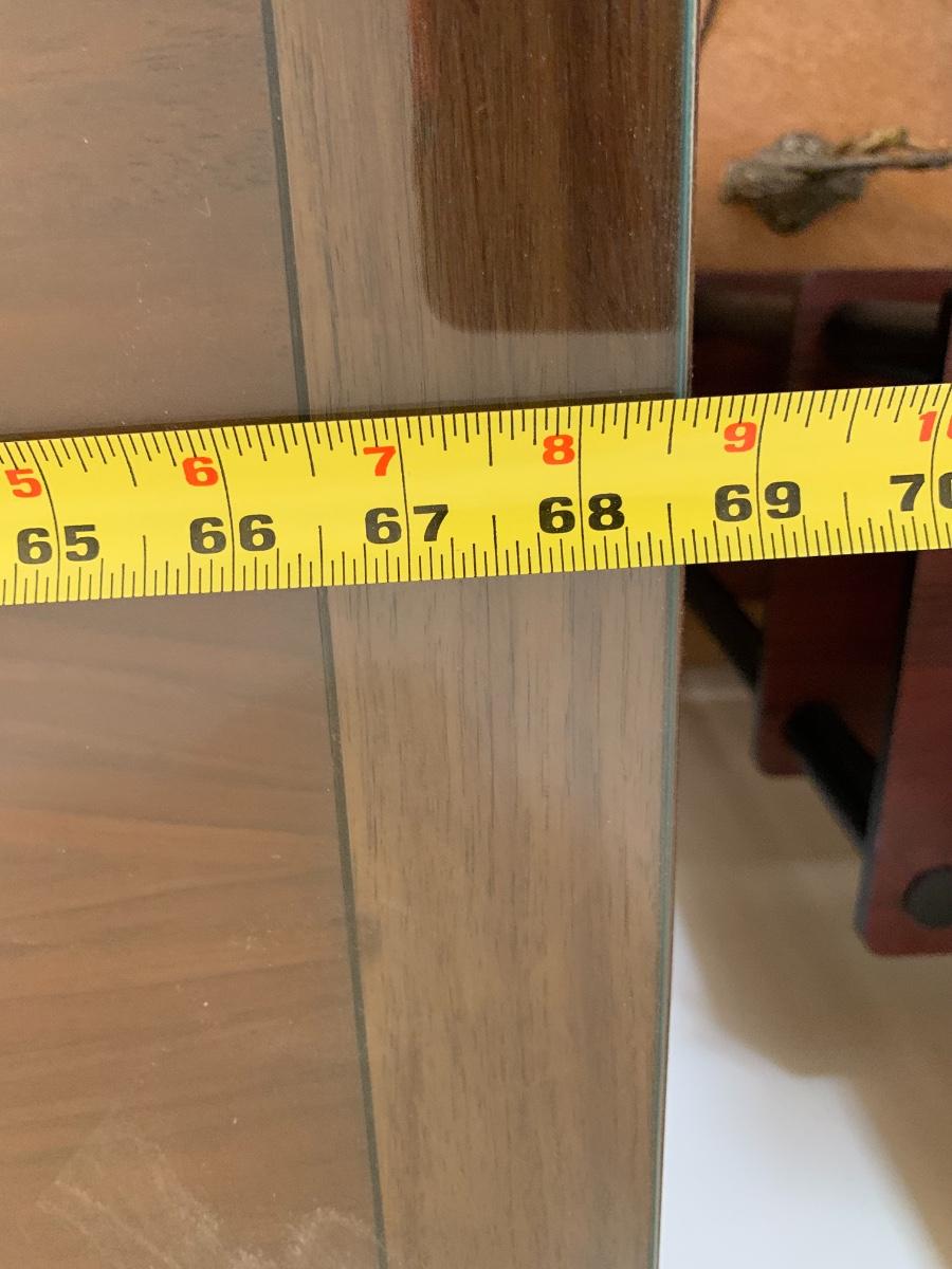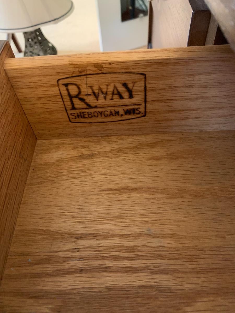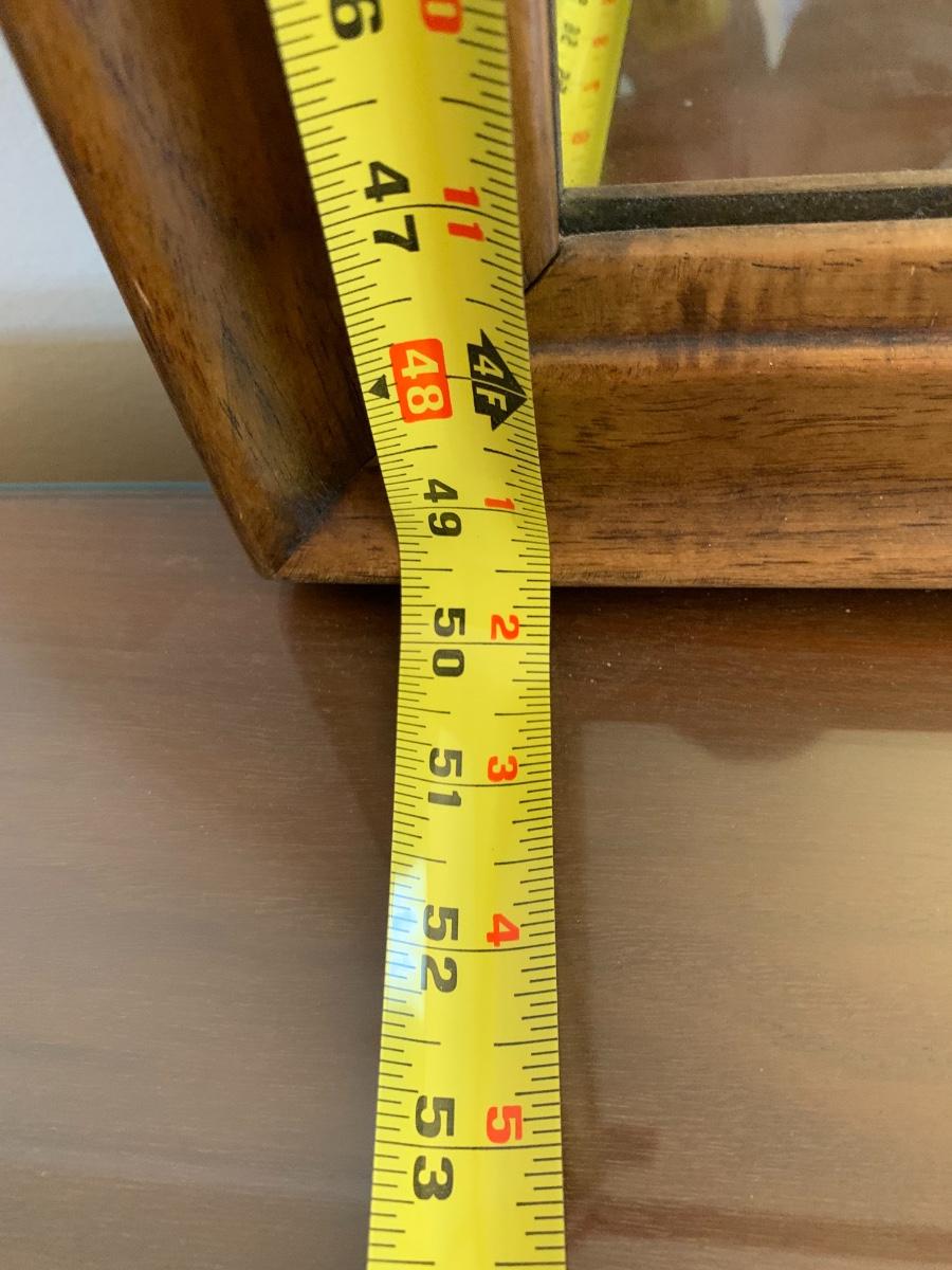One side has door that opens and inner shelf. 6 drawers. Mirror attaches on back. Silver pulls.