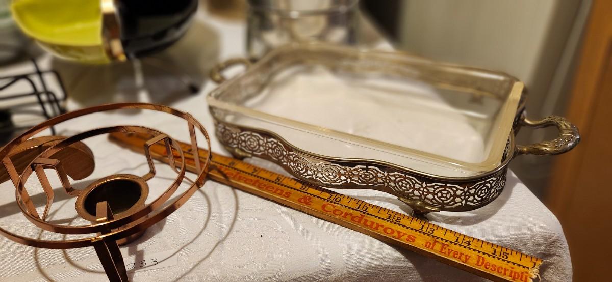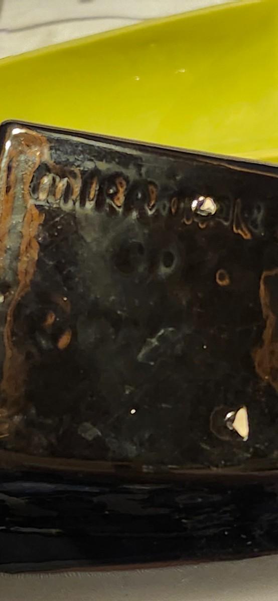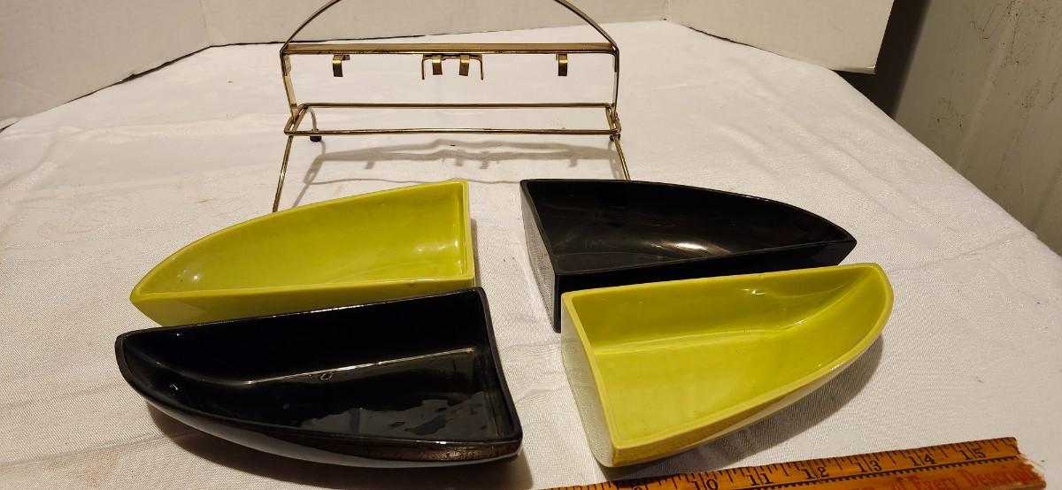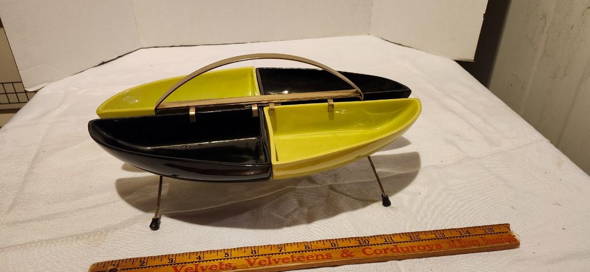 Mcm 1950s Miramar Of California Pottery Relish Tray/ Brass