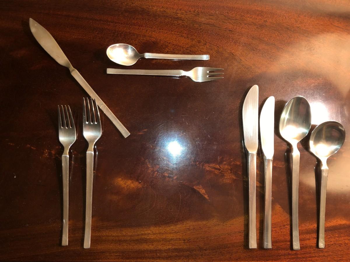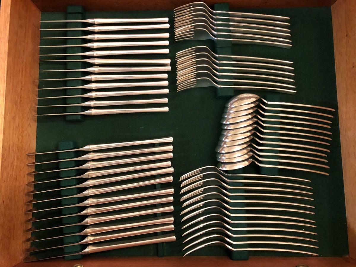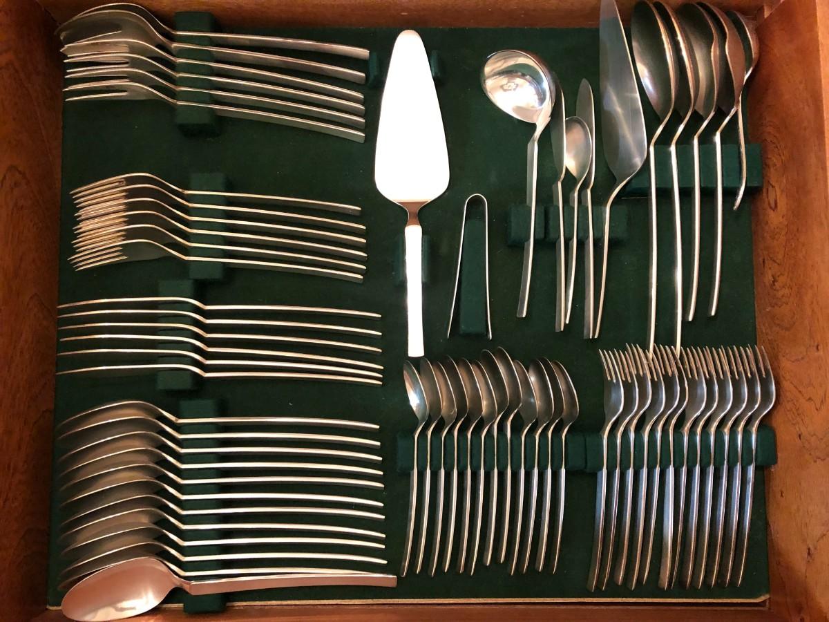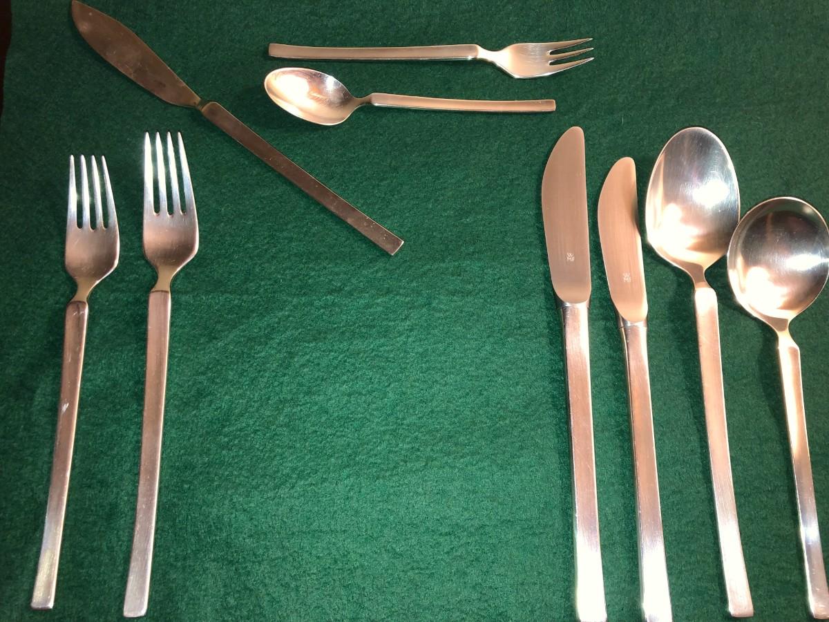 German-made by WMF; service for 12! Buyer responsible for packing up and removing from cabinet.