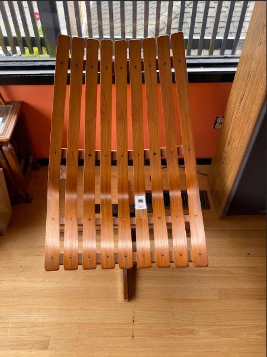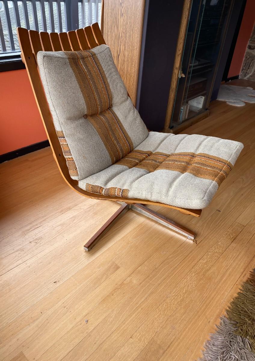 MCM vintage wood slat swivel chair with cushion. No makers mark.