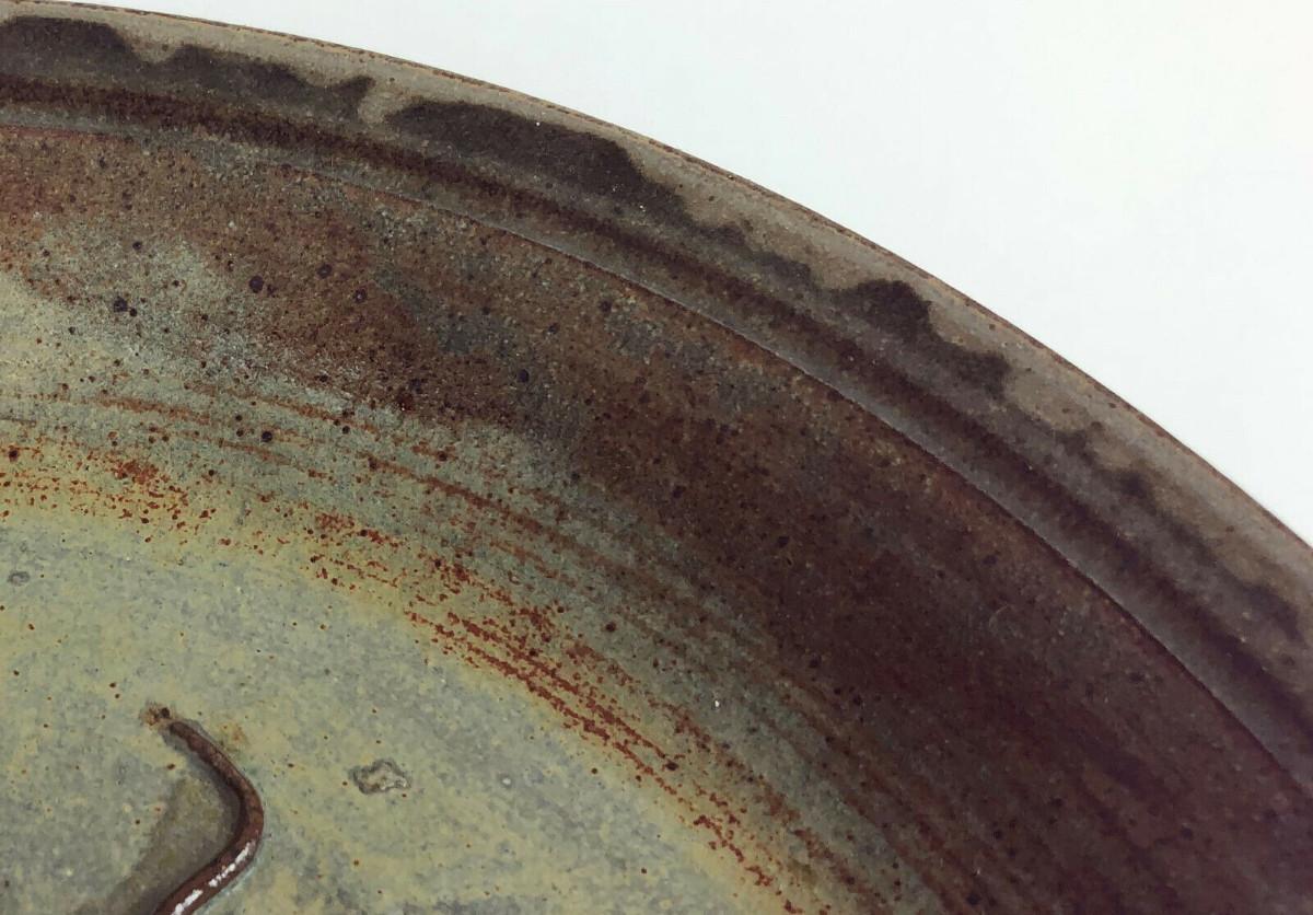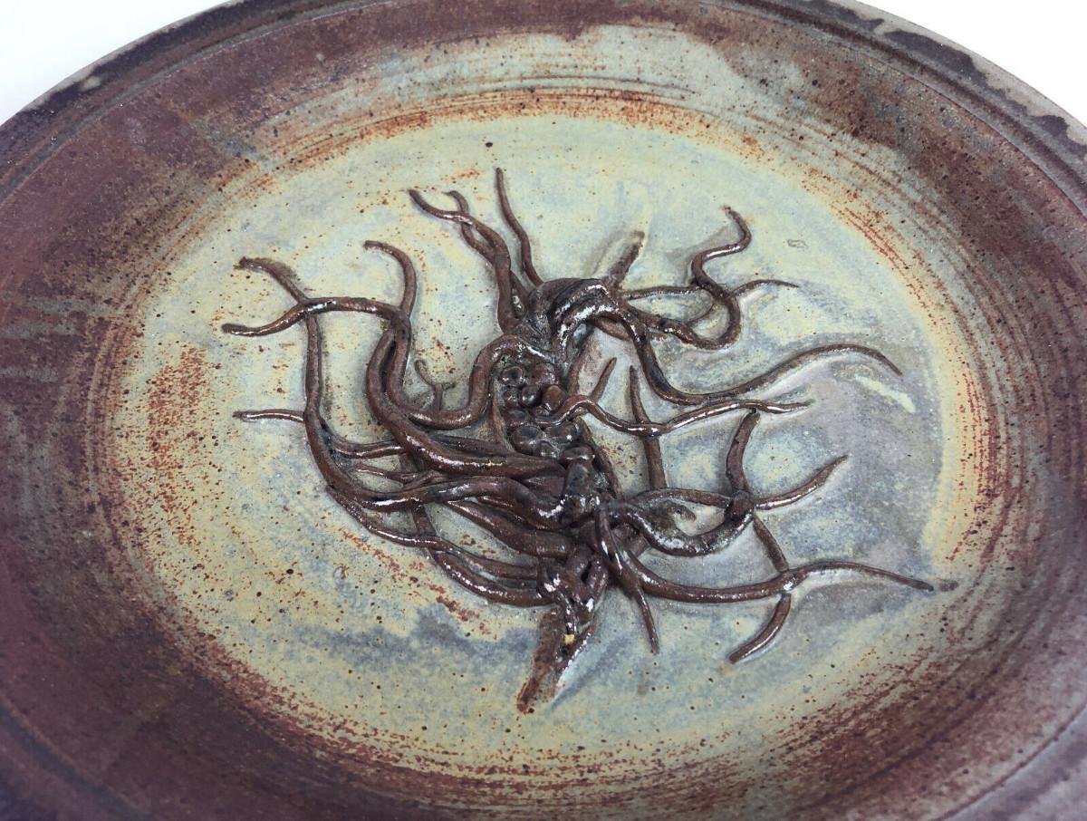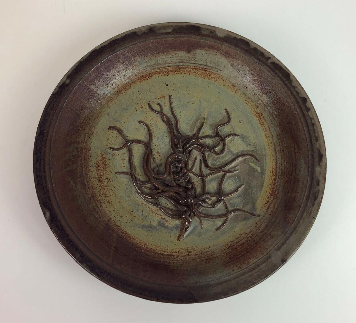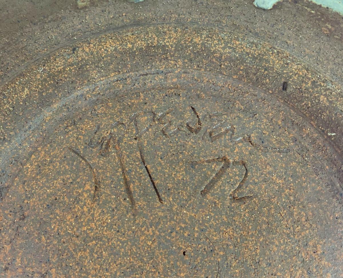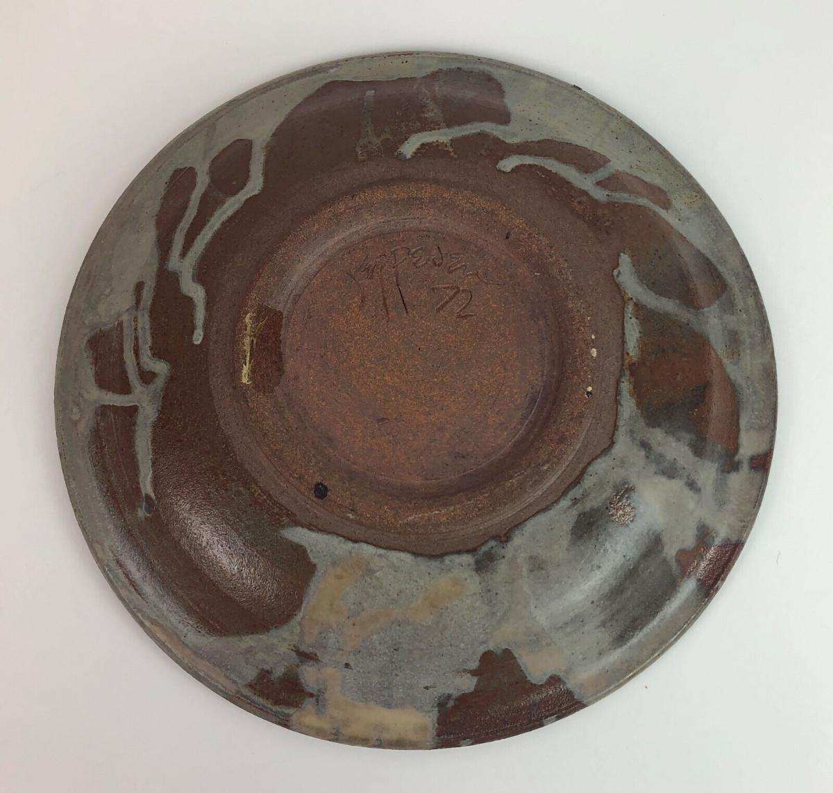 Here is a 13" diameter organic stoneware art plate from 1972..signed by the artist Jeppeson...Excellent condition...No chips or cracks...Offered with no reserve...