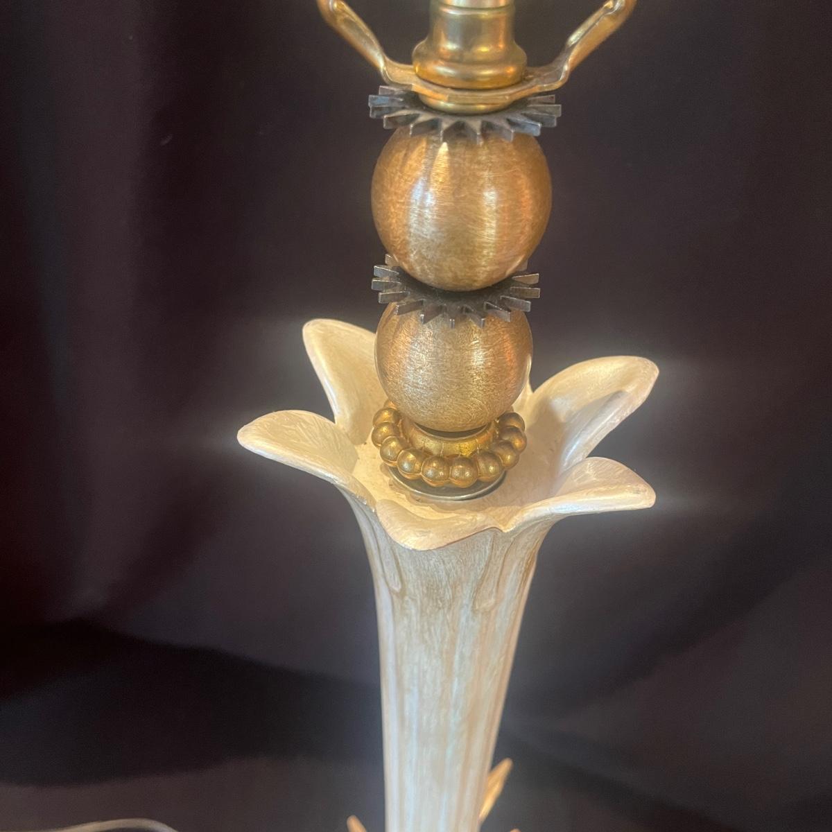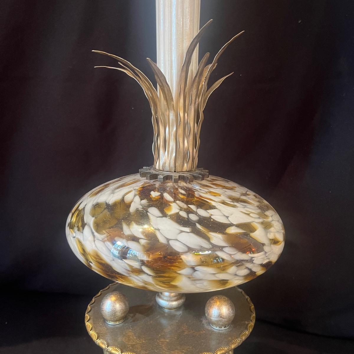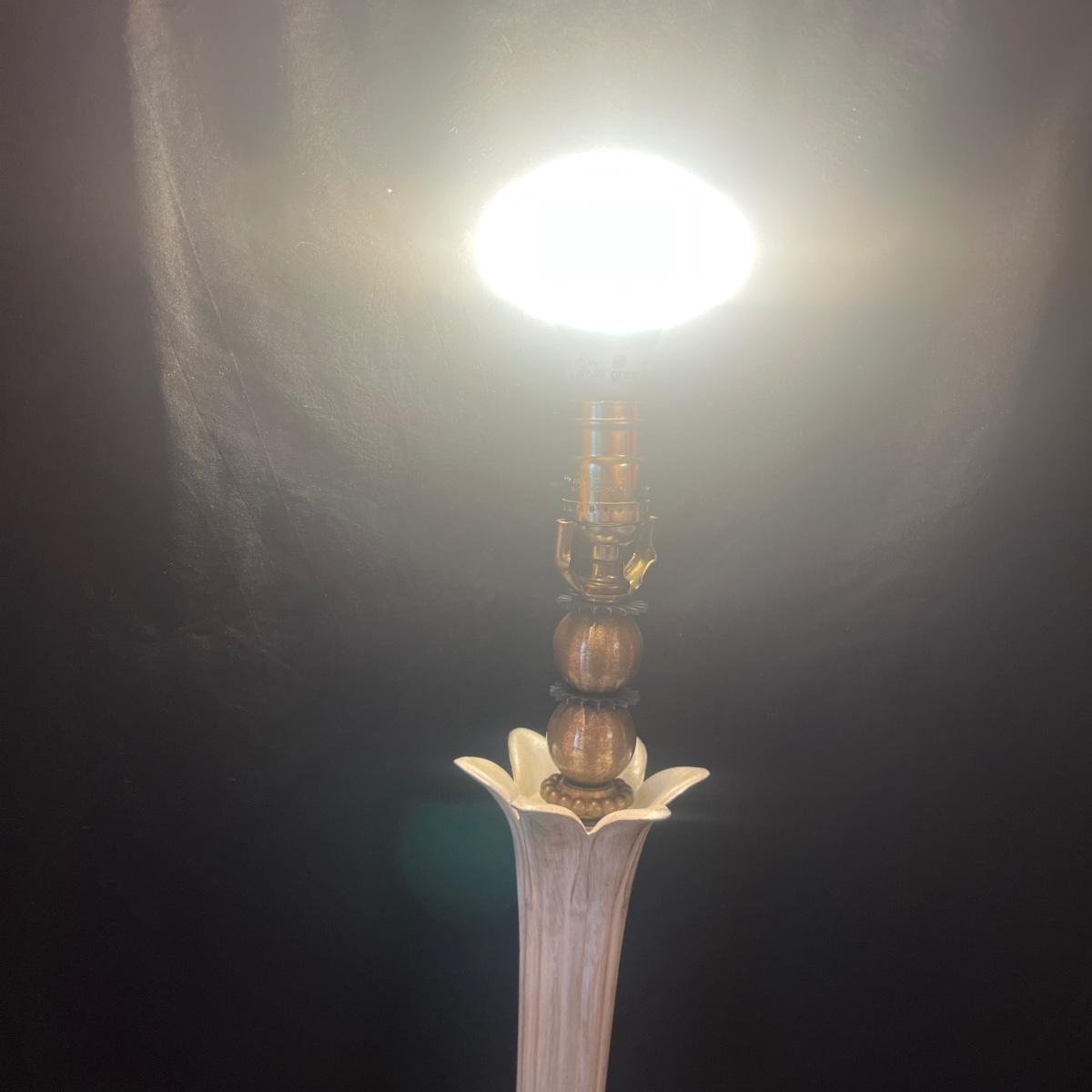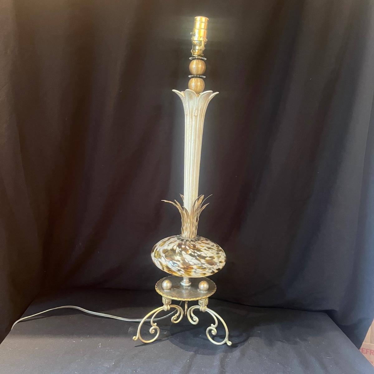 Lot includes a metal and glass MCM style lamp. Lamp powered on when plugged in. Lamp measures 10”D x 31”H. There is no shade, so you can pick the perfect one to fit your style!