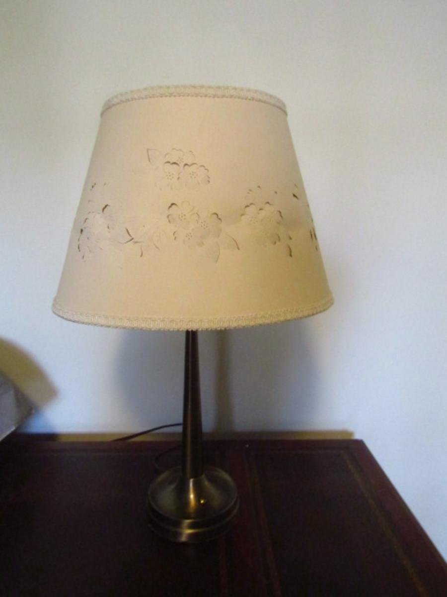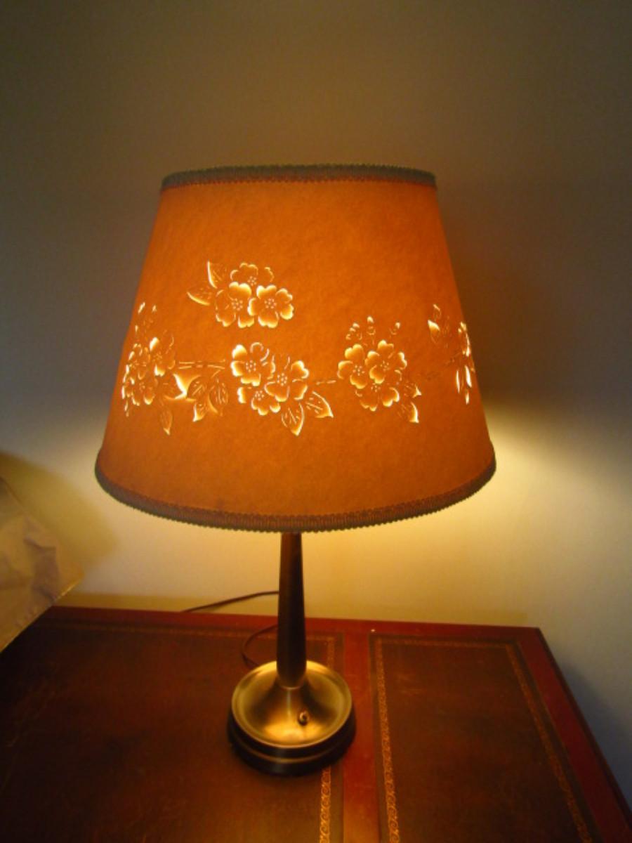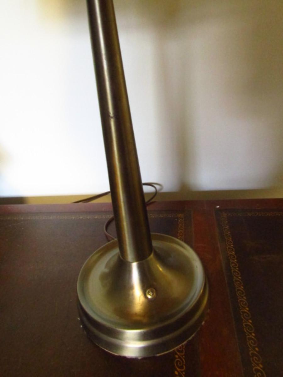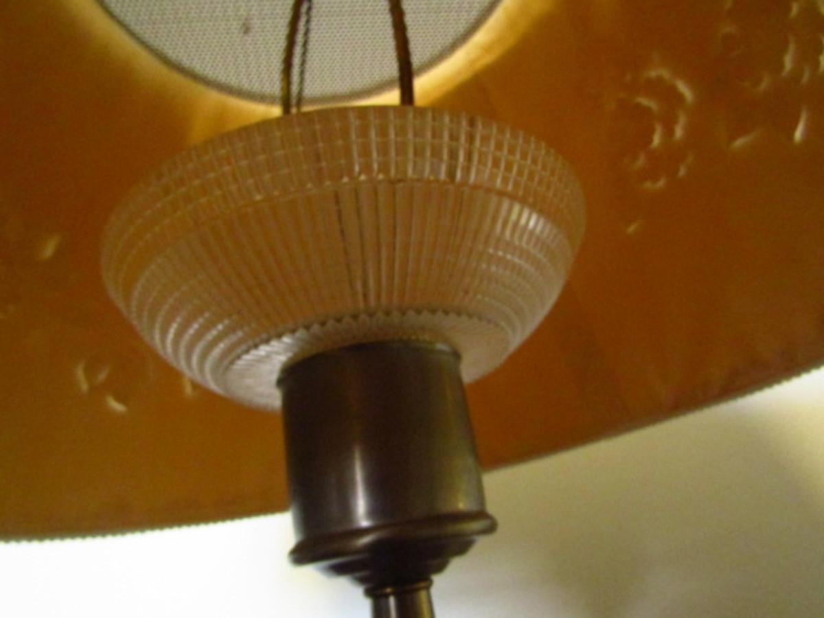 MCM Style Metal Post Lamp with Perforated Paper Shade Over Glass Shade