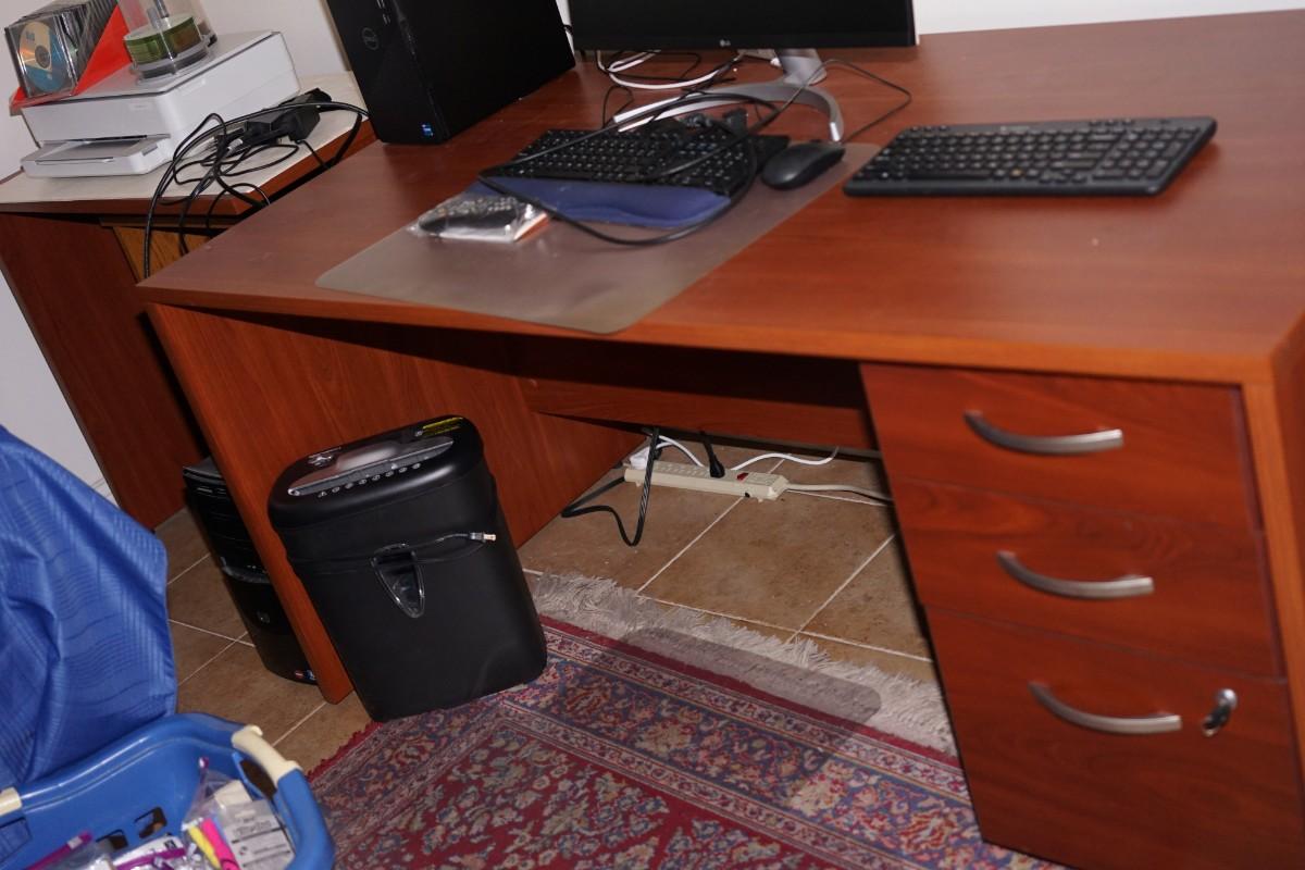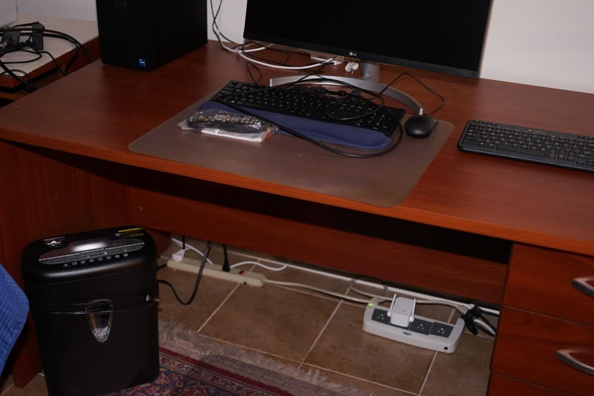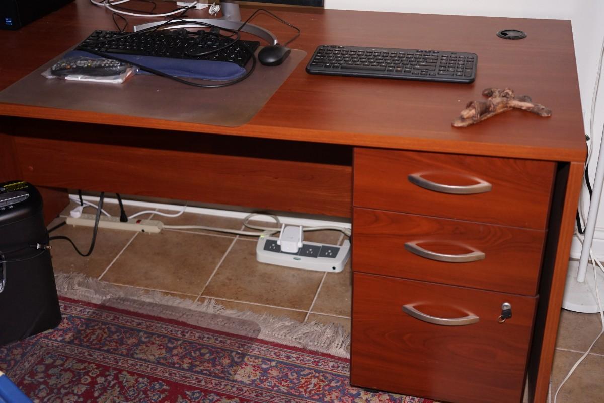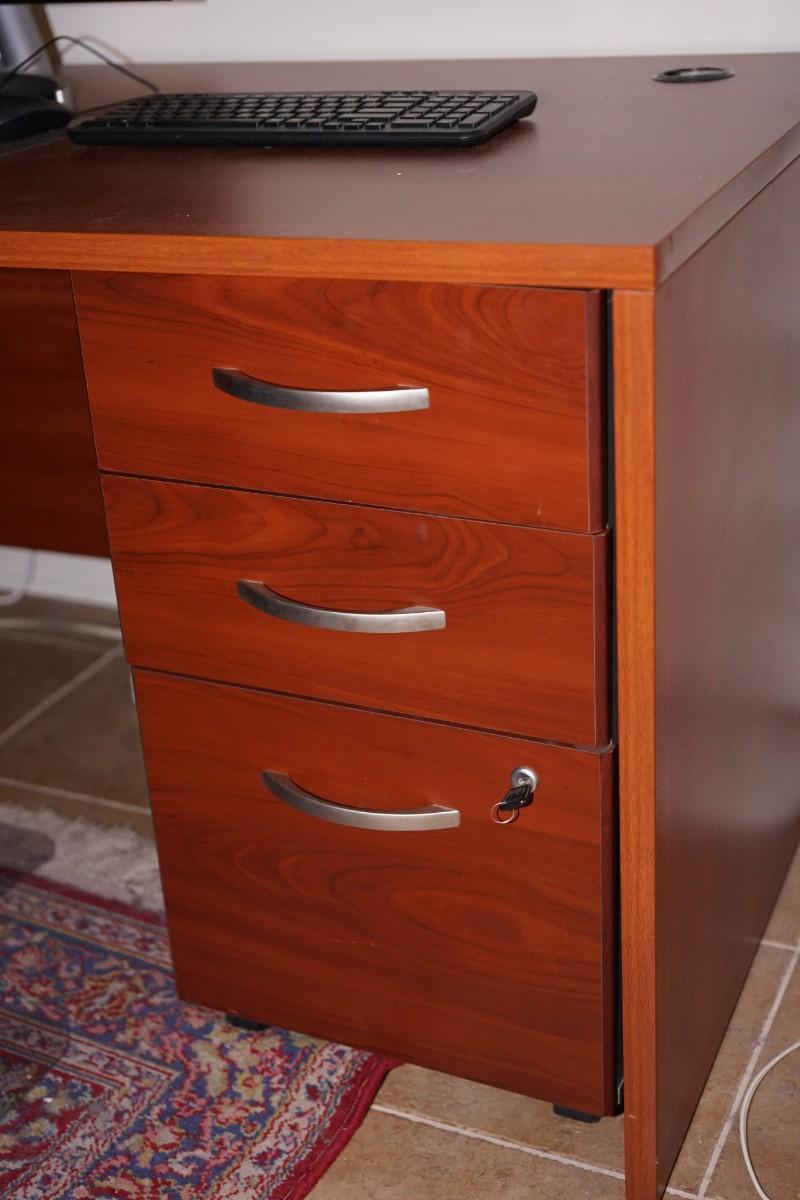 MCM STYLE OFFICE CONFERENCE STYLE DESK, CHERRY? - BRUSH CHROME HANDLES.