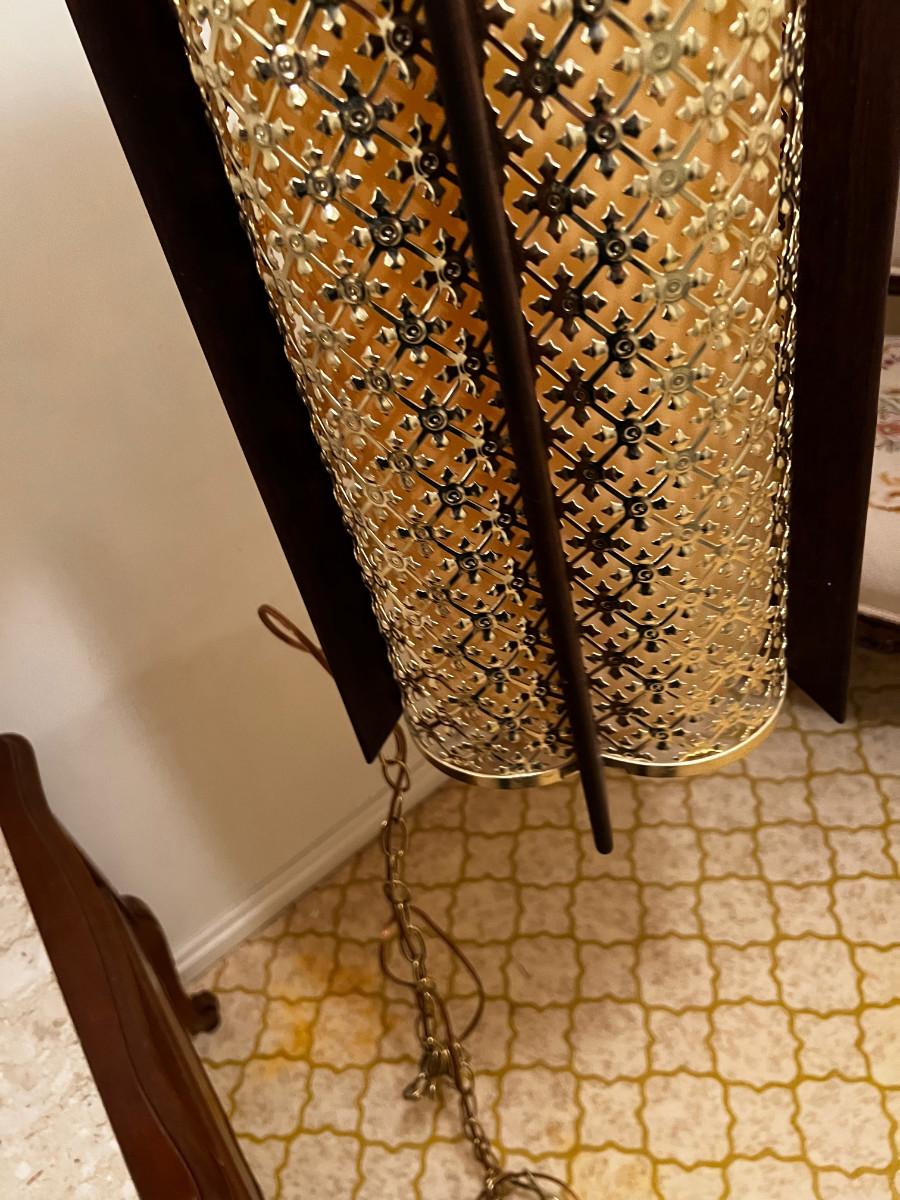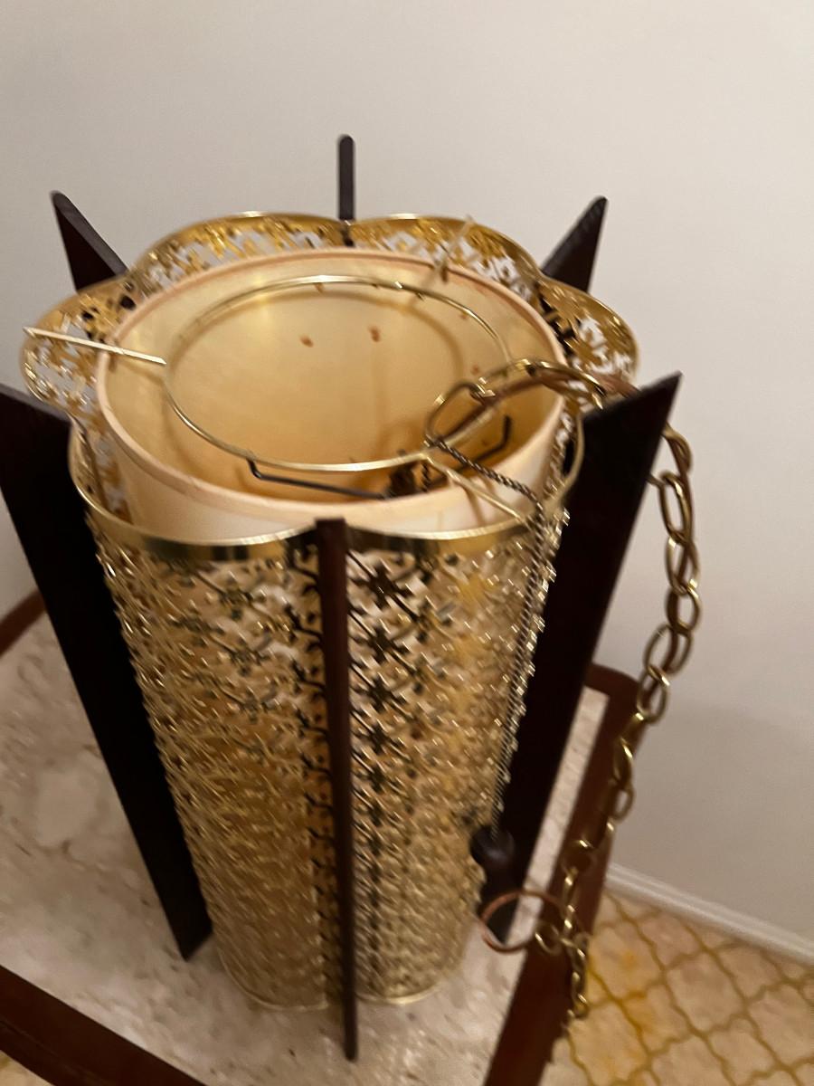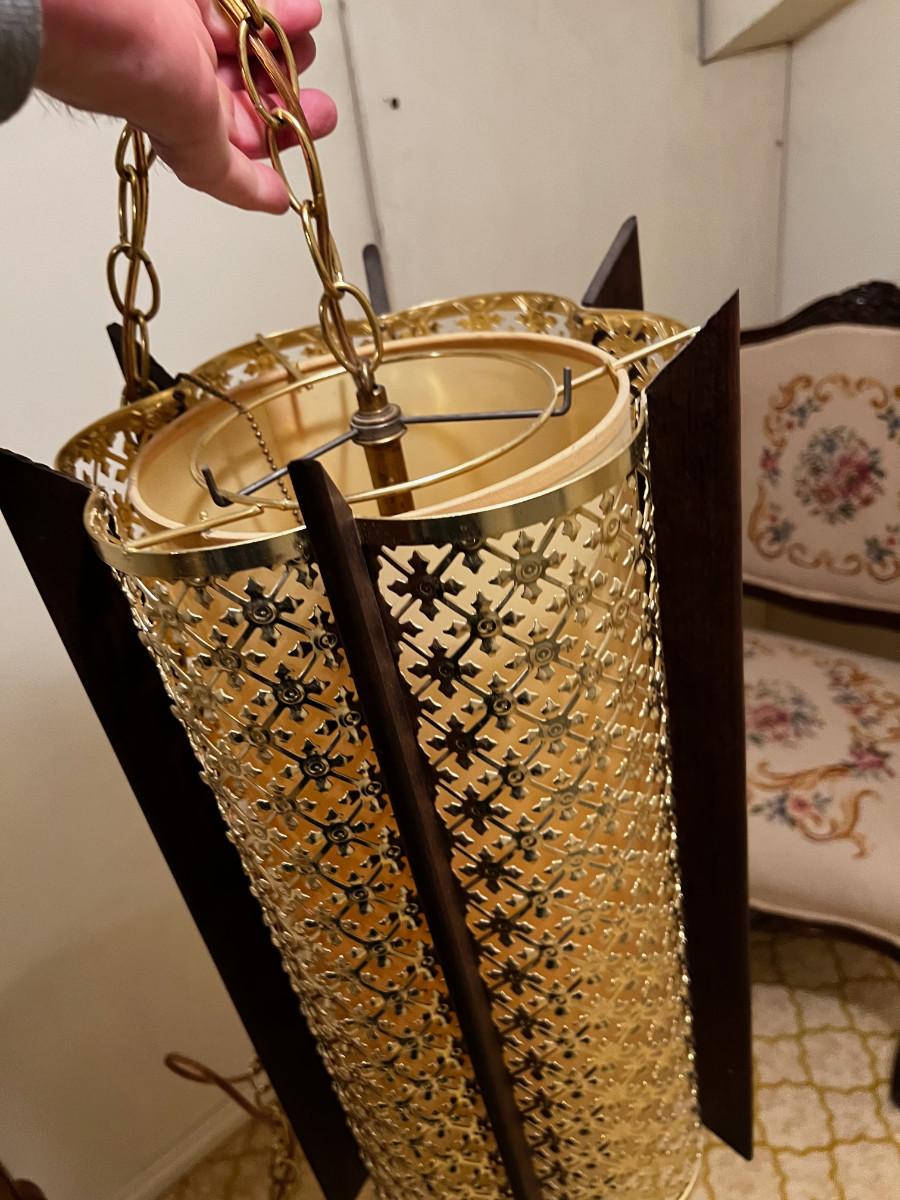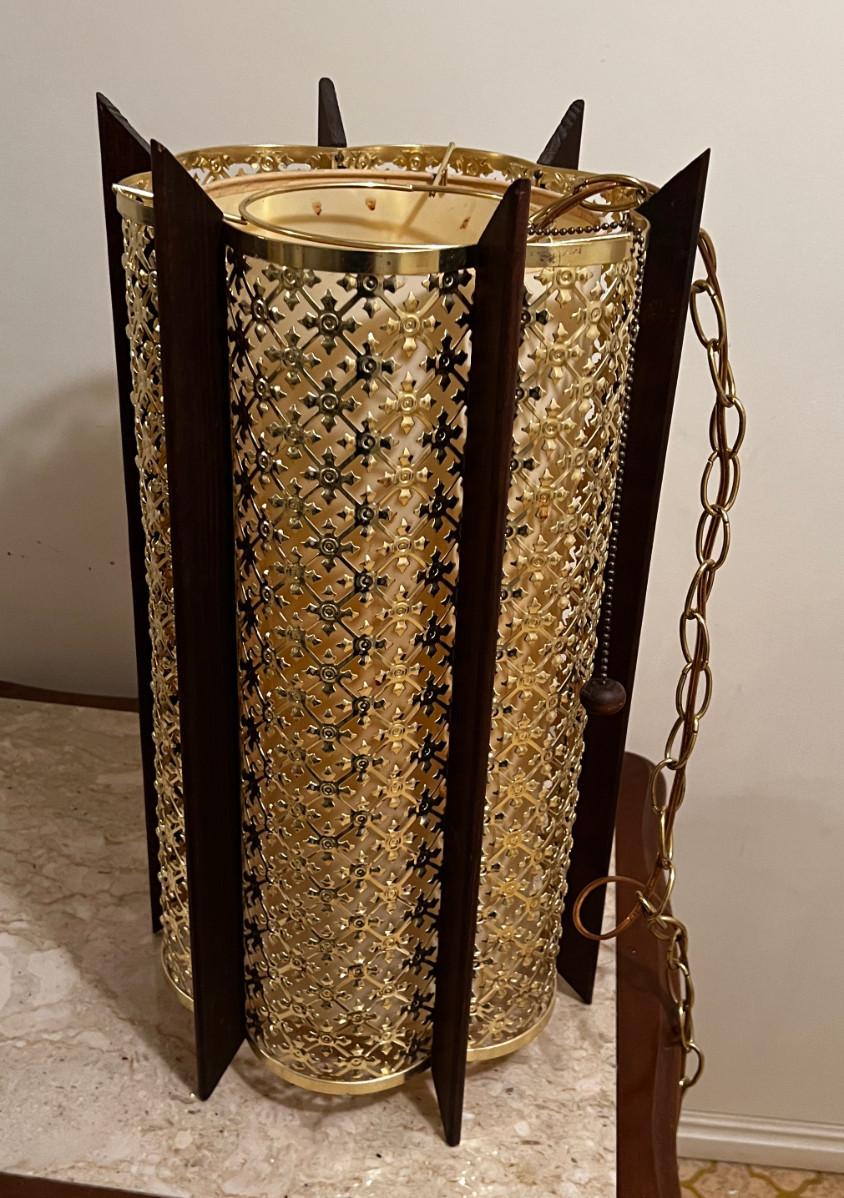 MCM Swag Chain Lamp Wood and Metal + Fiberglass Shade
