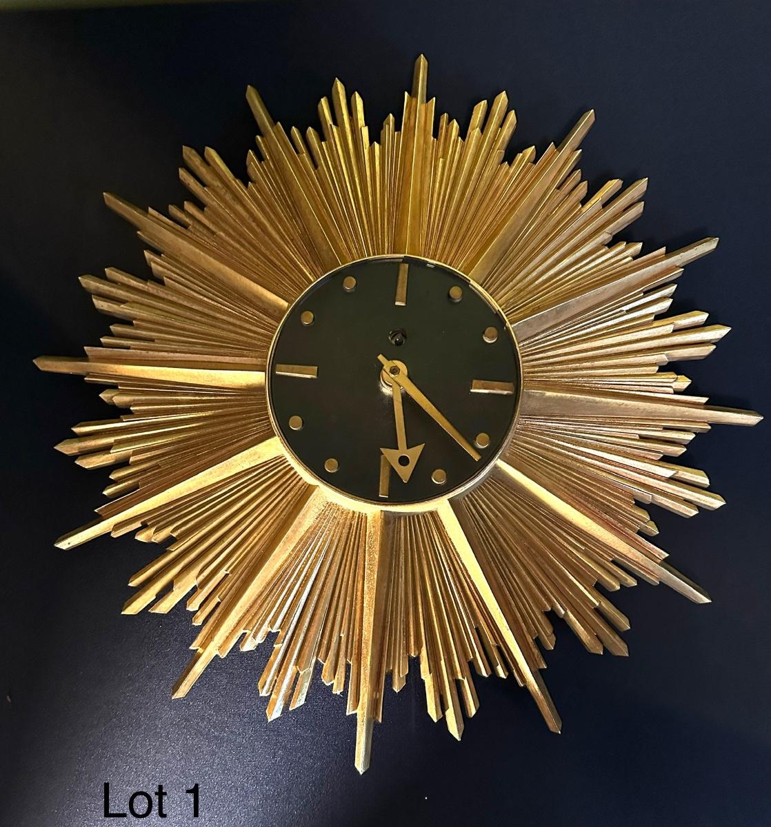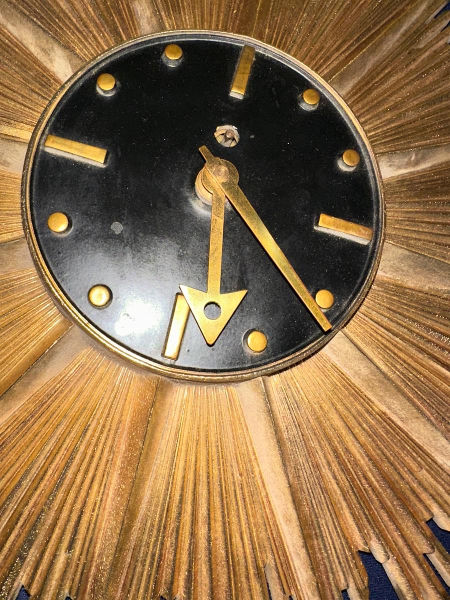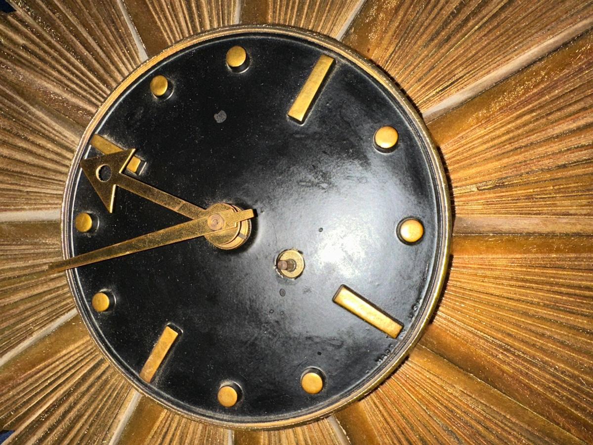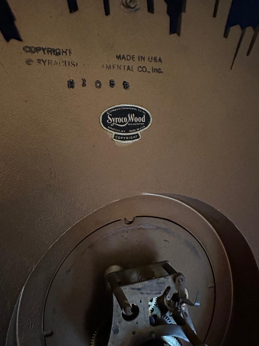 MCM SYROCO WOOD STARBURST CLOCK, UNTESTED USA MADE 17" ACROSS AS PICTURED
