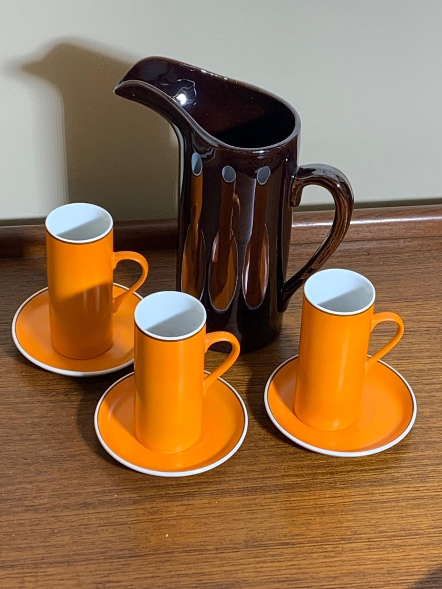 MCM Tackett Serving Pitcher, Cup and Saucers Mid Century Lot