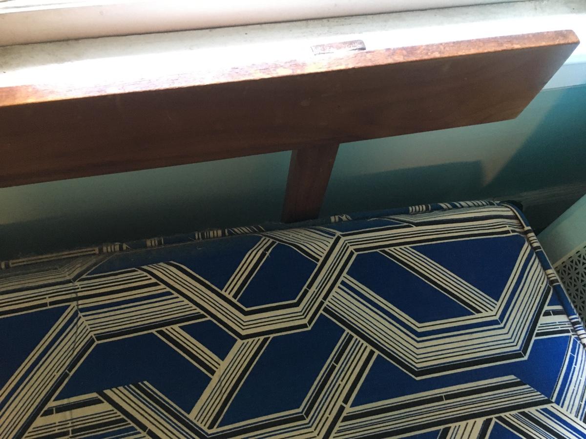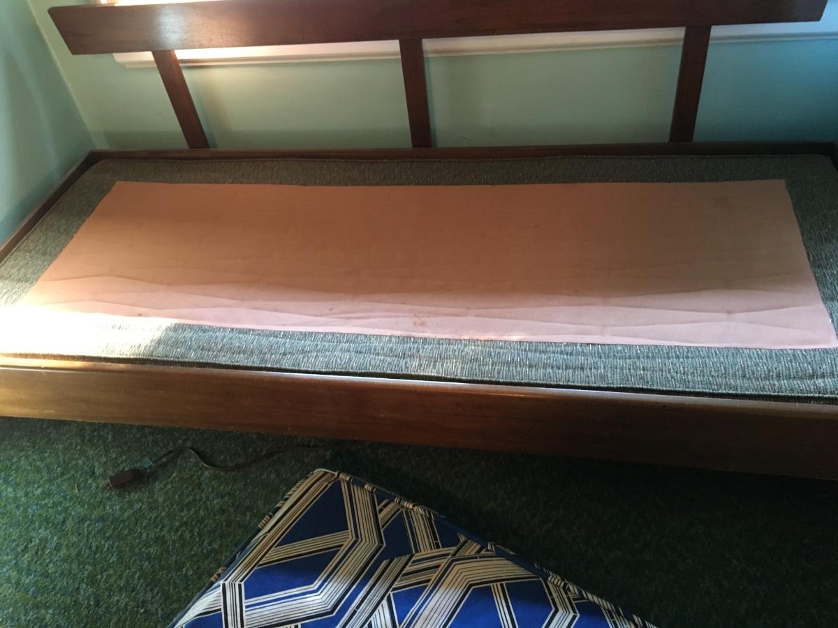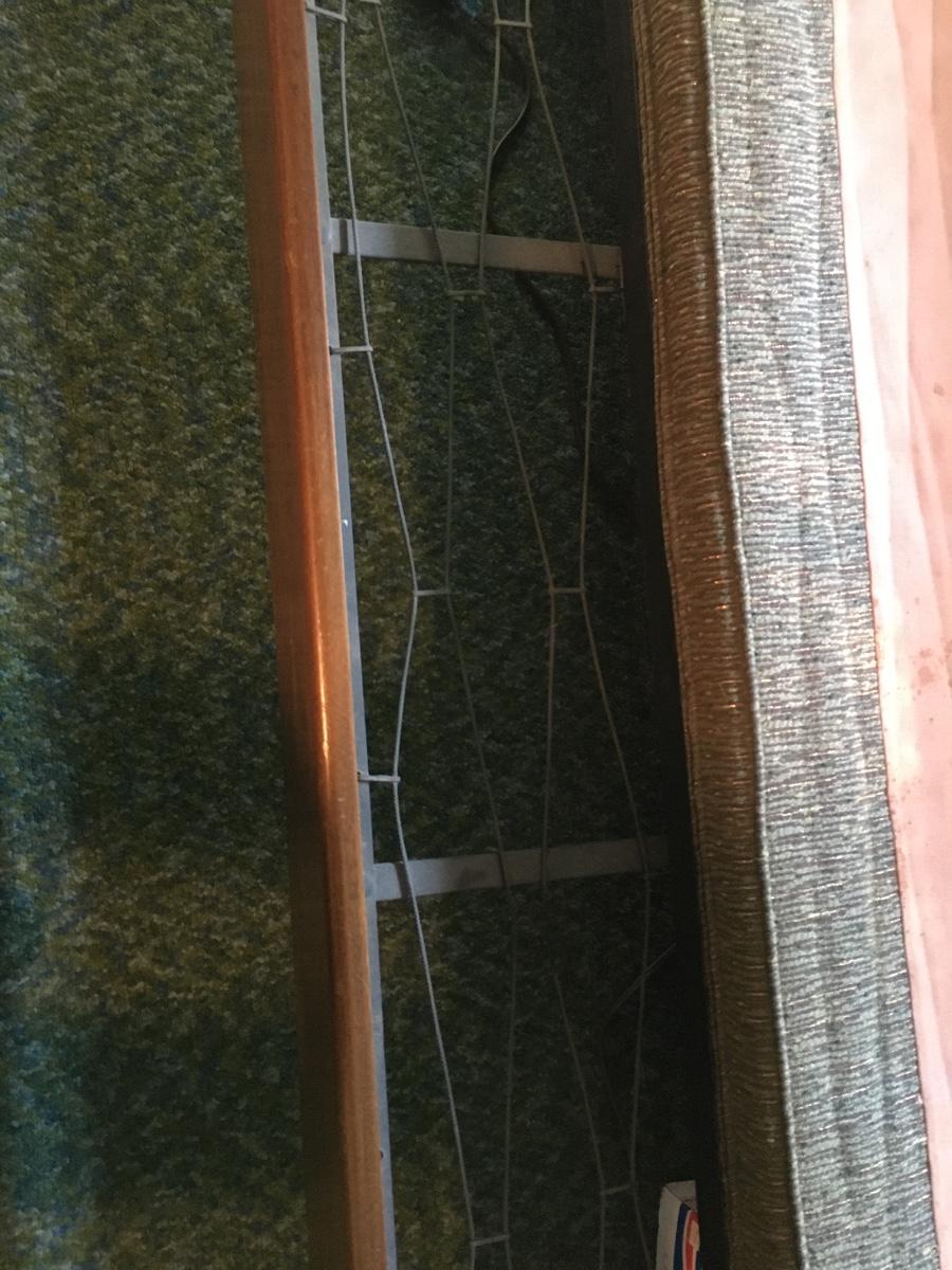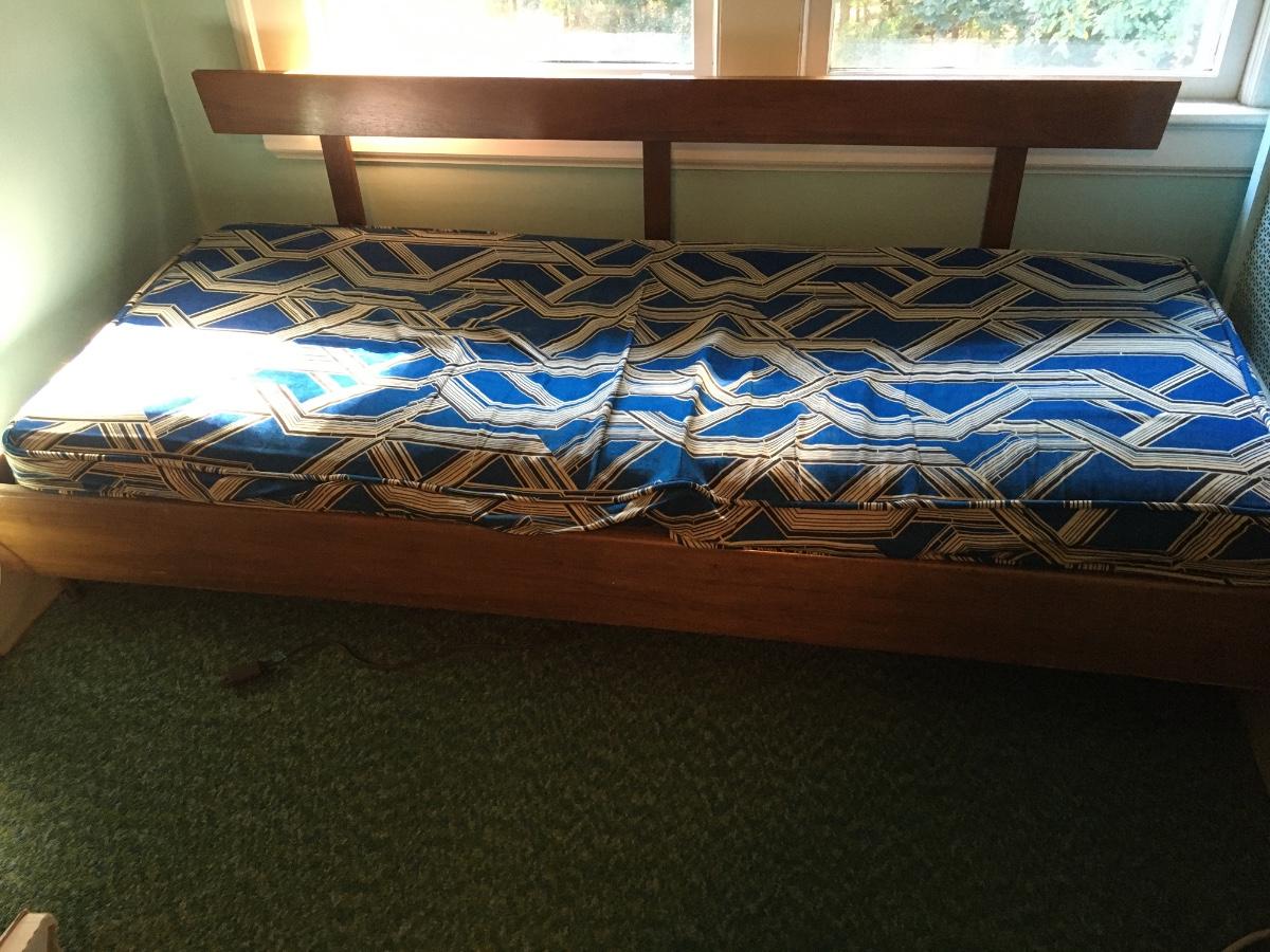 You woold need to replace all bedding, but frame is in excellent condition. Bottom trundle has hook and ey faserner which allows bottom spring to be moved out for additonal sleeping. No arms.