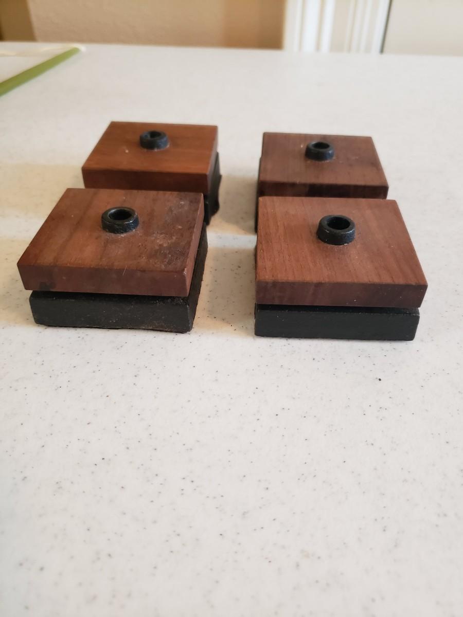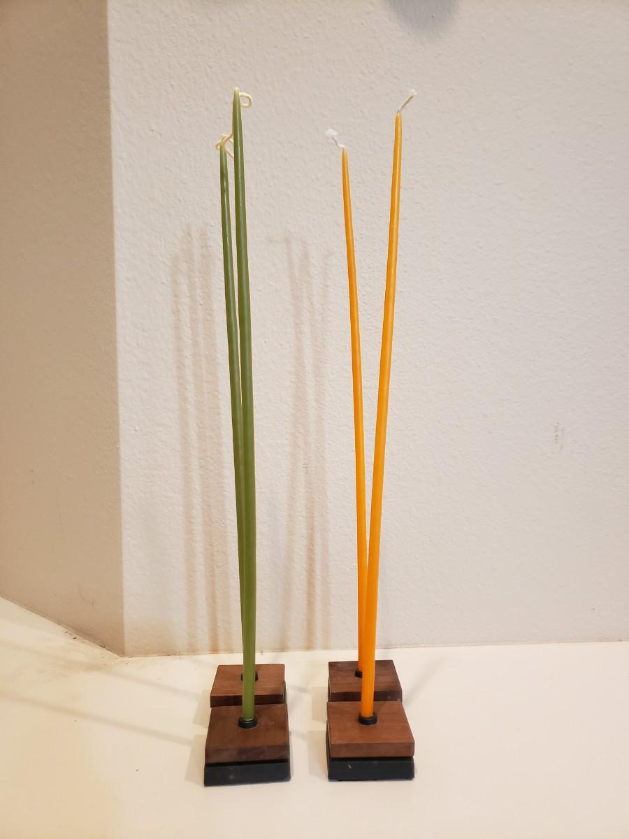 Lot of 4 MCM teak & iron candlesticks by Random Industries. Includes 4 candles by Faroy candles.