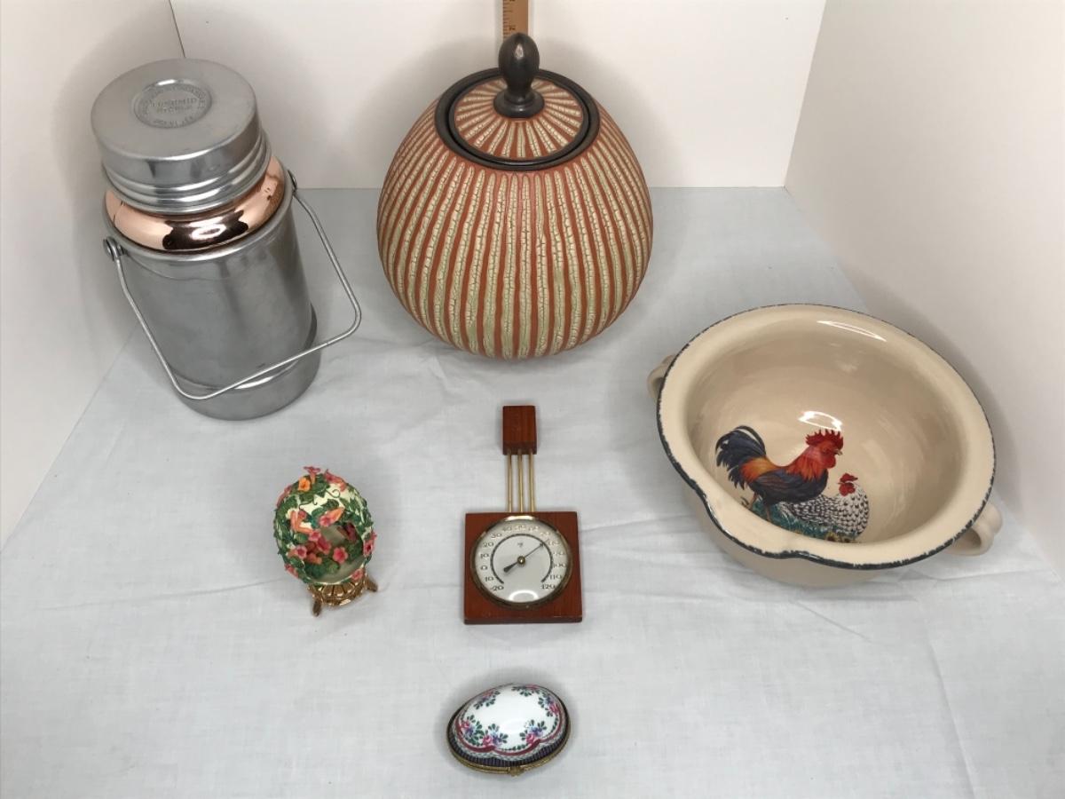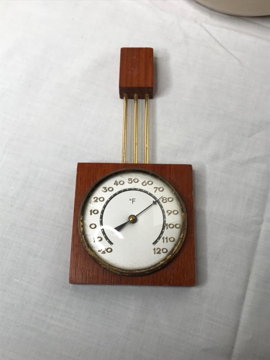 MCM wood and brass thermometer