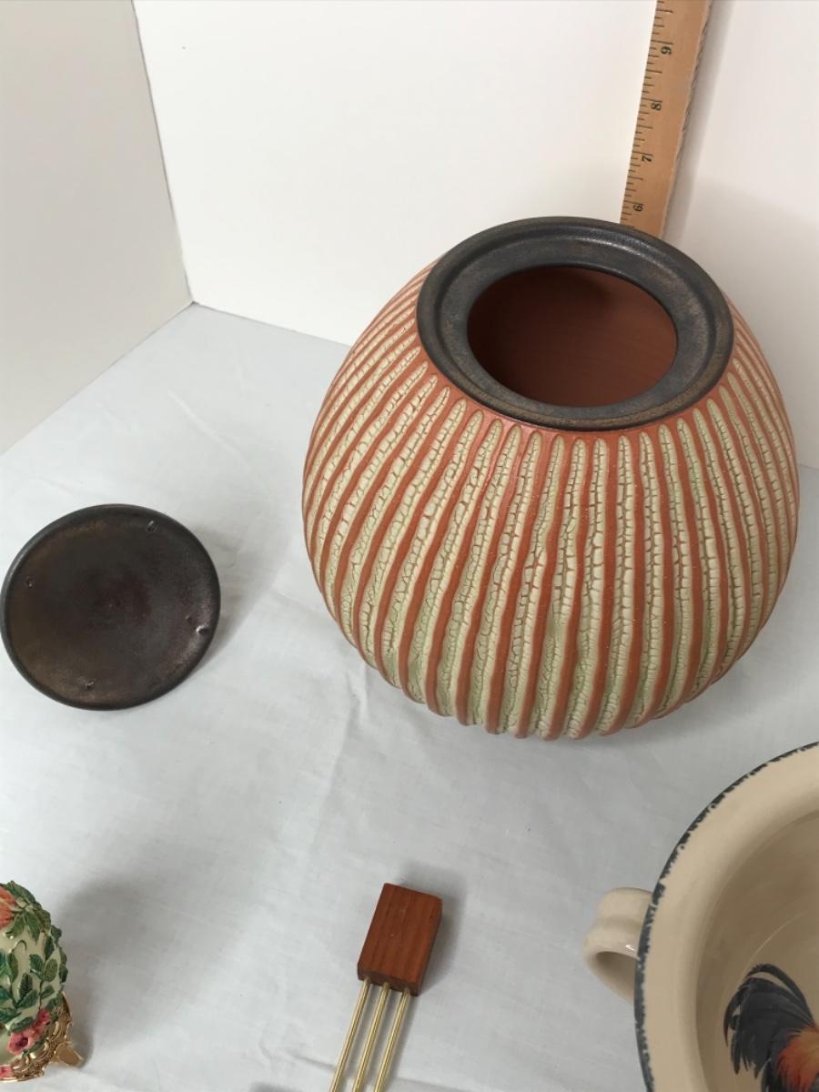 Porcelain Gourd with lid trimmed in metal