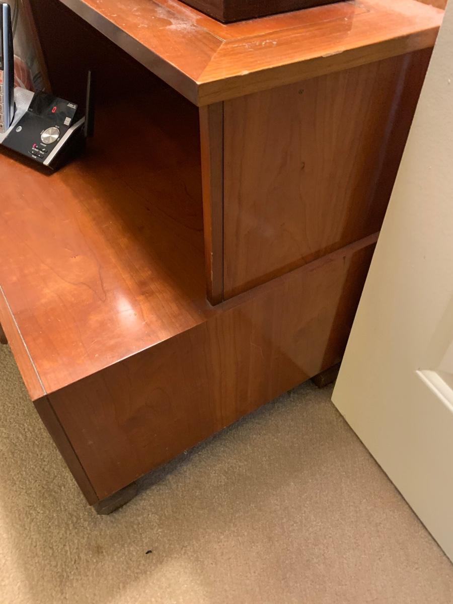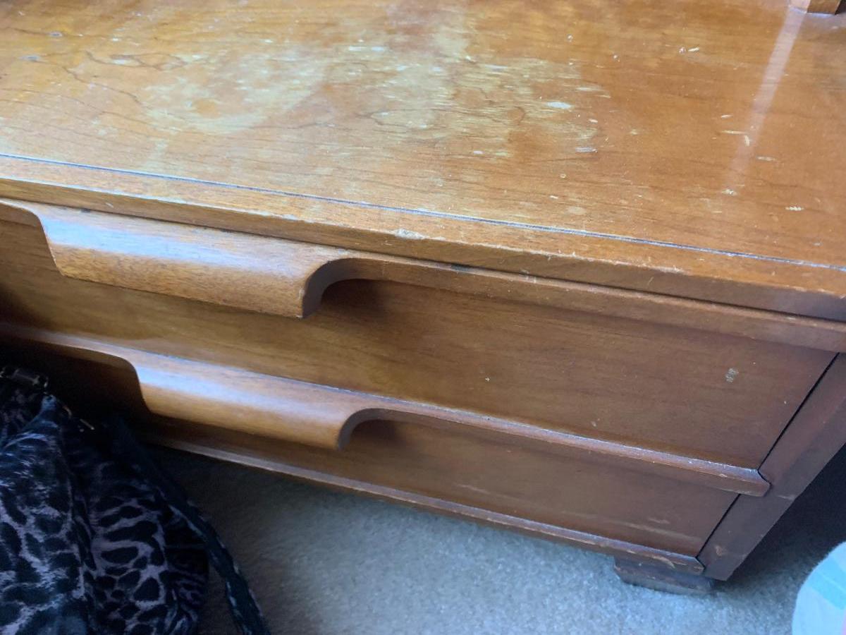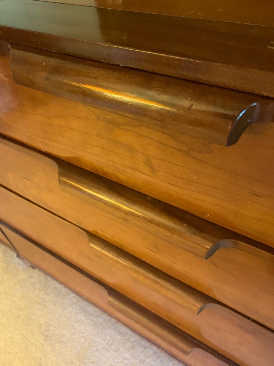 Dressers all in very nice condition as is headboard.. Pair of nightstands show some wear (especially the one that's near the window).