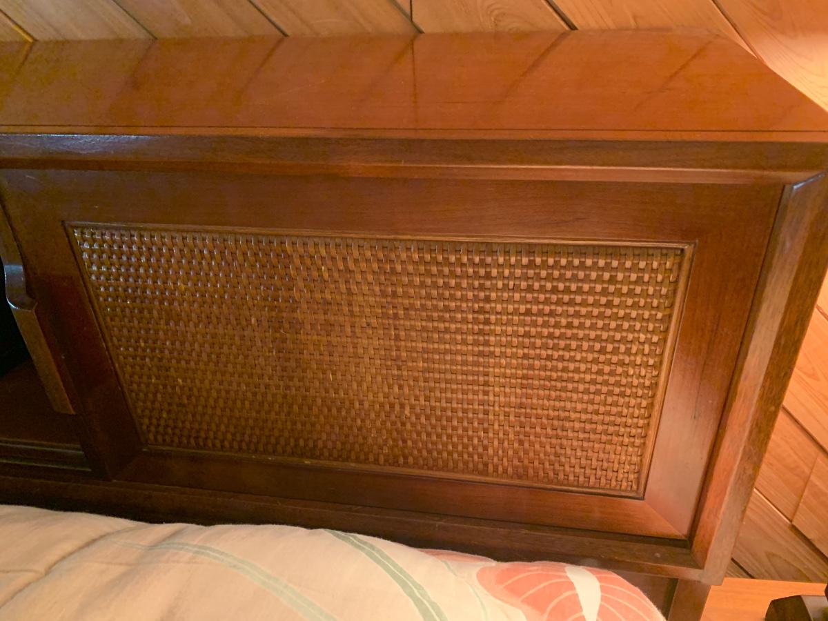Bed Headboard Fits King Size Bed. Drawers slide open and close on ends.