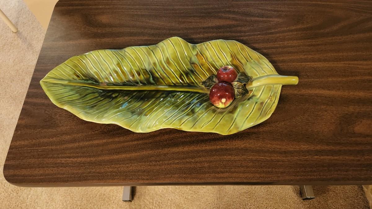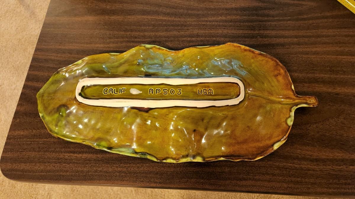 MCM Vintage California USA Pottery AP-503 Green Leaf W Fruit  8” X 20”