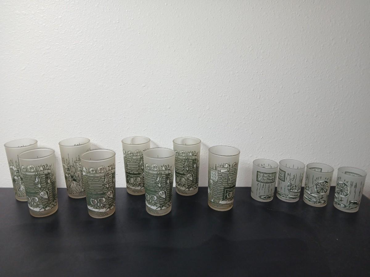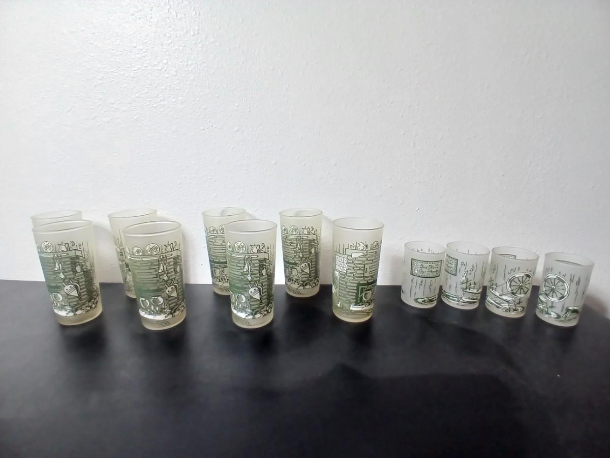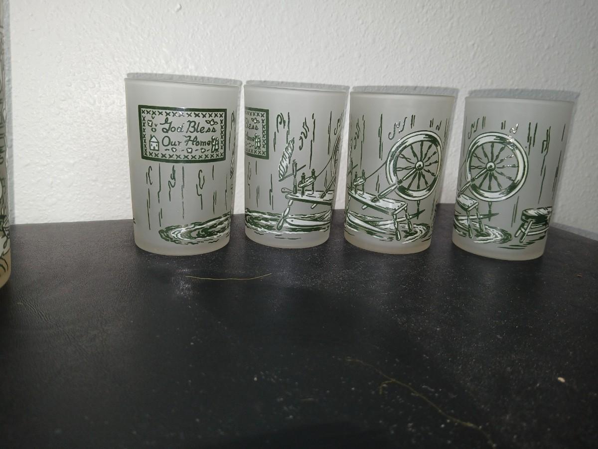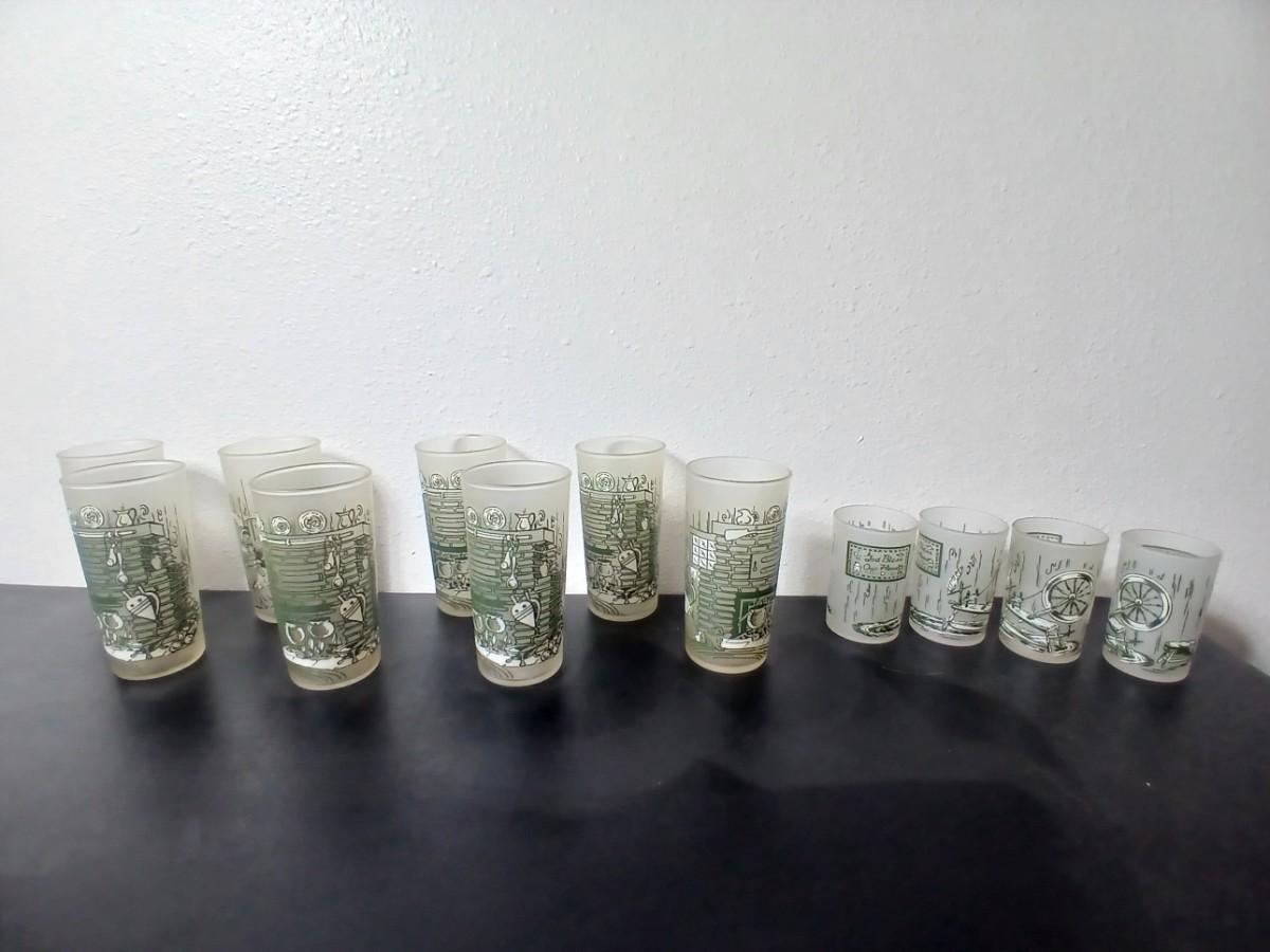 MCM vintage Hazel Atlas "Colonial Homestead" frosted tumblers 8 total & 4 total Juice glasses