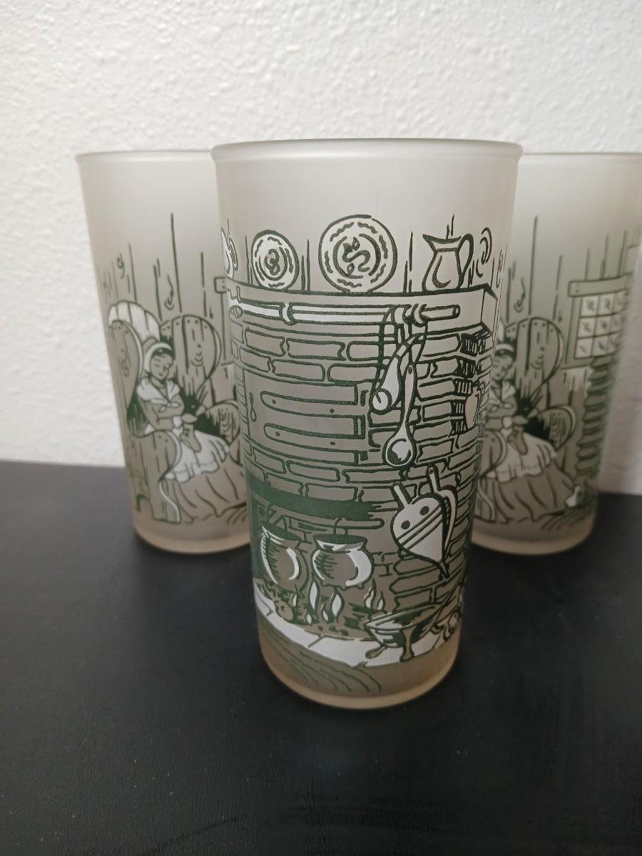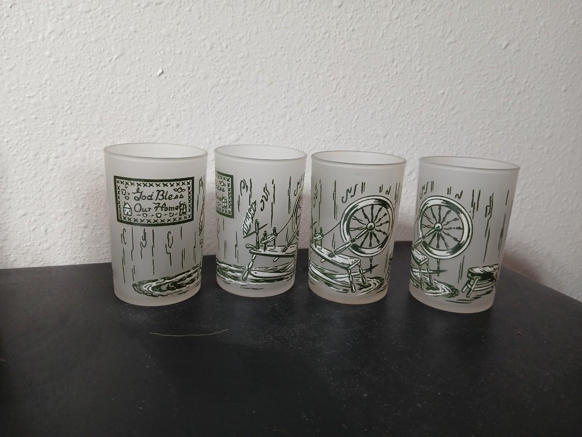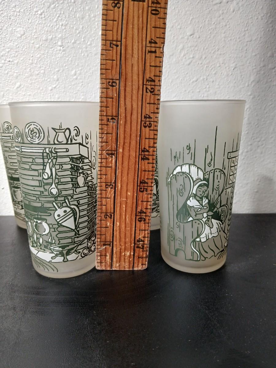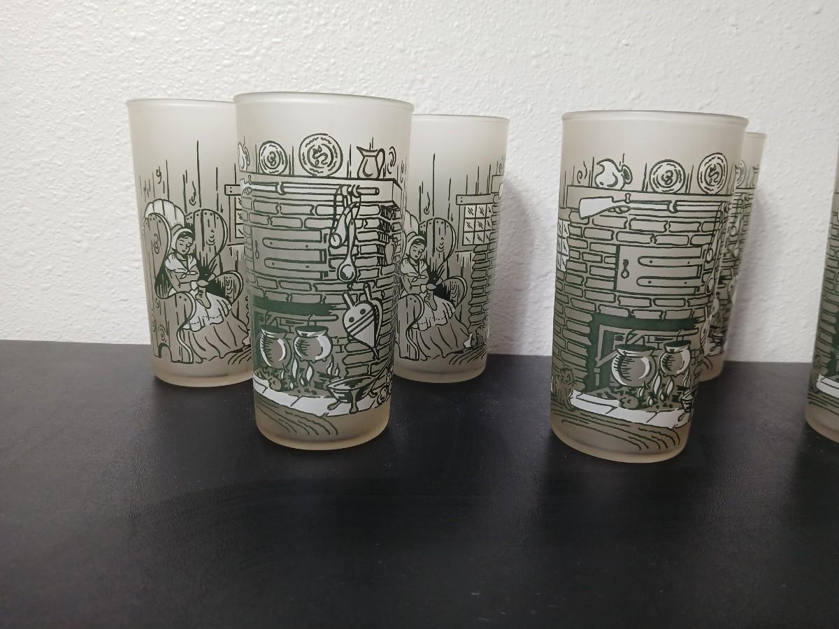 MCM vintage Hazel Atlas "Colonial Homestead" frosted tumblers 8 total & 4 total Juice glasses
