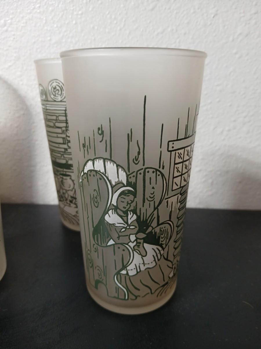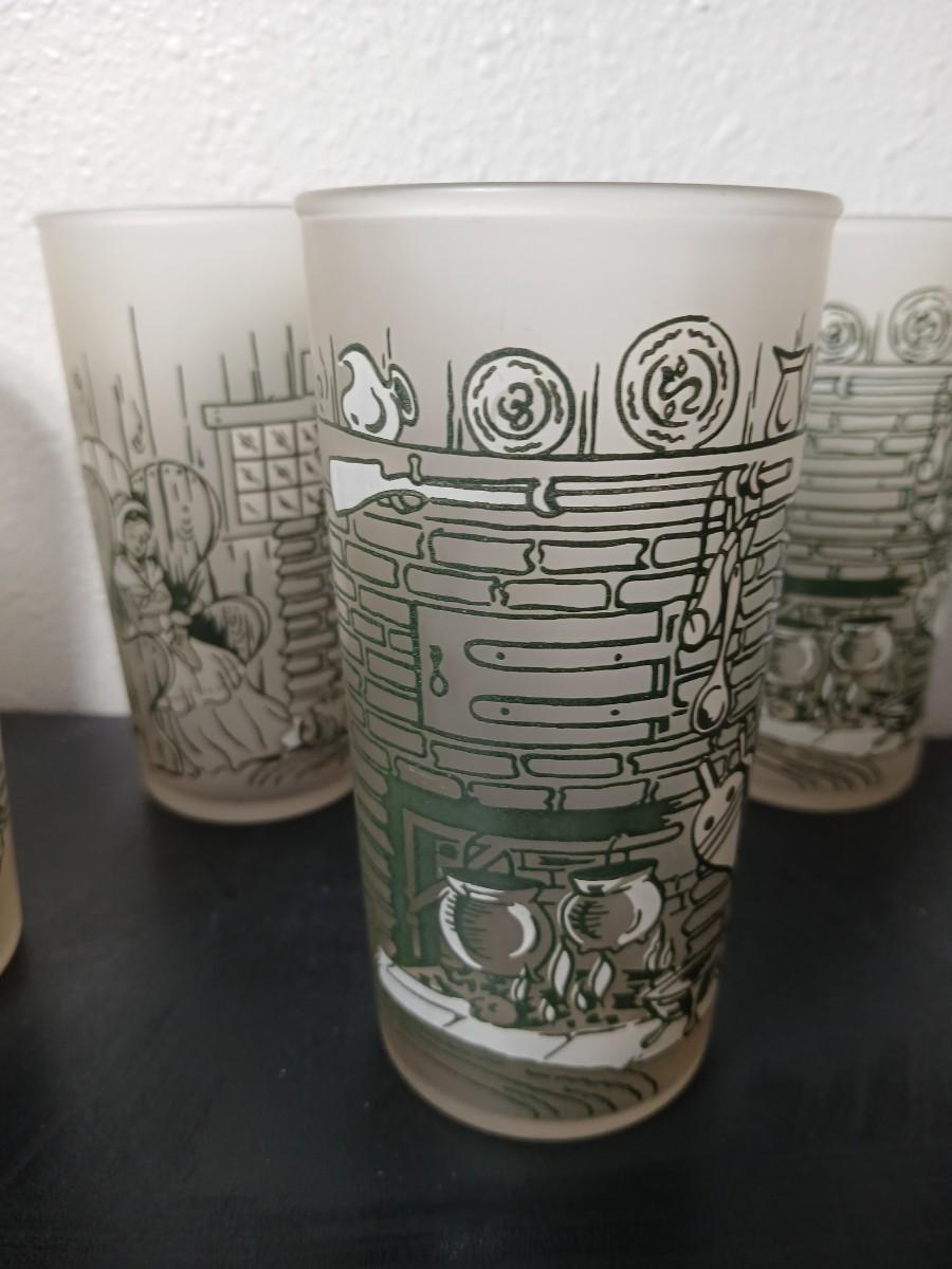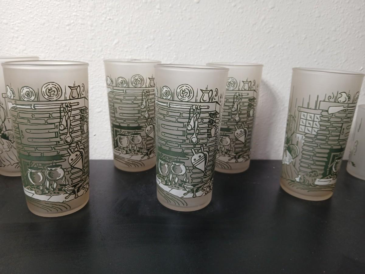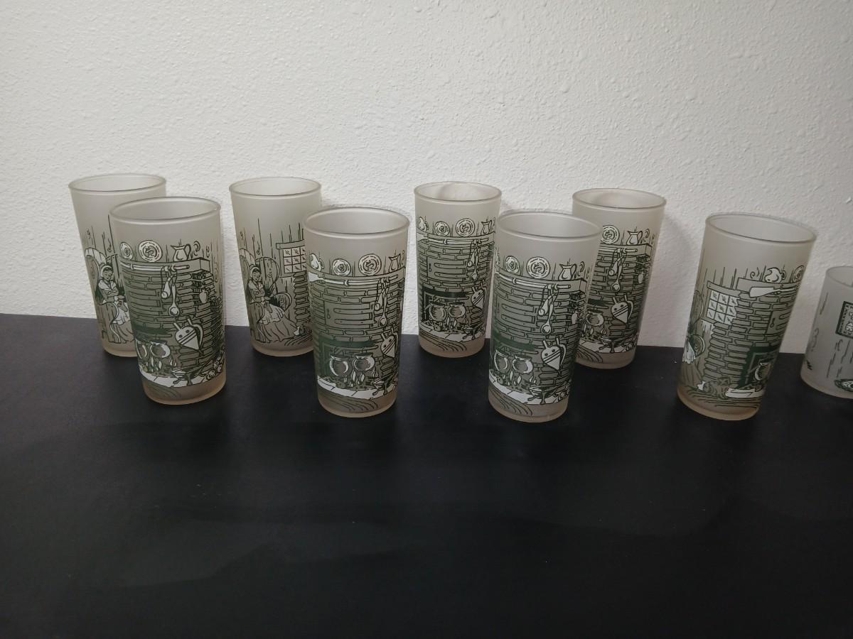 MCM vintage Hazel Atlas "Colonial Homestead" frosted tumblers 8 total & 4 total Juice glasses