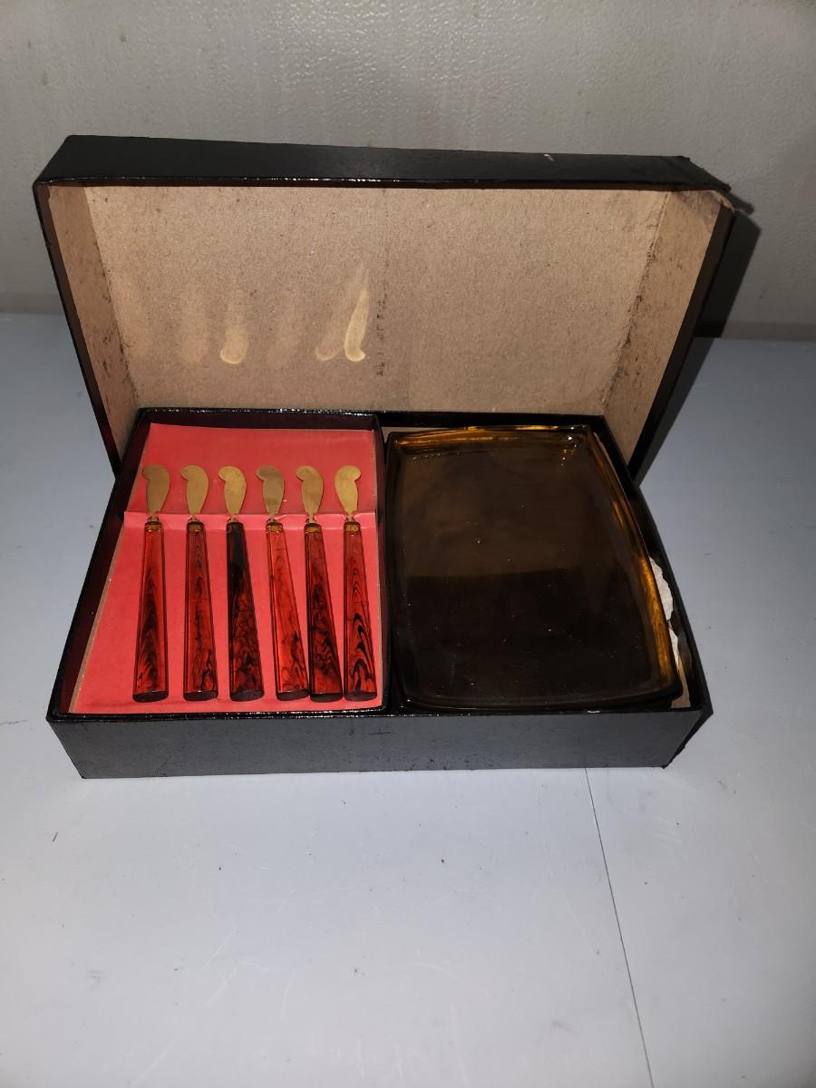 NOS MCM Vintage Lucite Plates Tortoise Set Appetizer Plates & Forks 12 Pcs